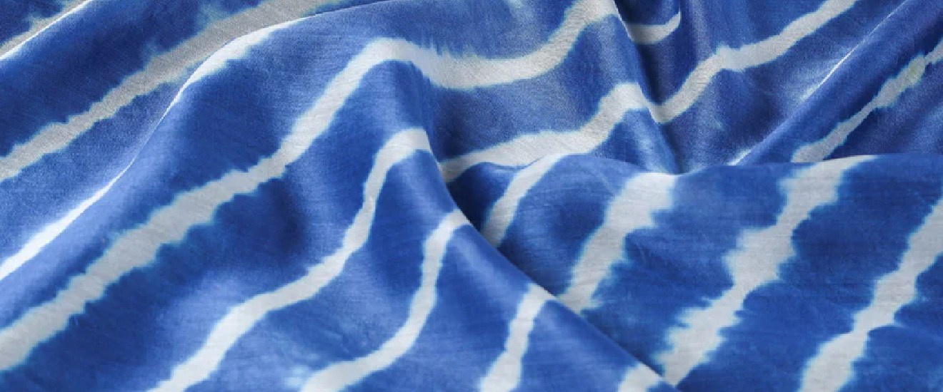 Leheriya is a traditional tie-dye technique originating from Rajasthan, India. The process involves creating beautiful, undulating patterns on fabric, resembling waves or rippling water. Artisans fold and tie the cloth before dyeing it, resulting in unique, vibrant, and colorful designs. Leheriya patterns are commonly used in sarees, scarves, and other traditional Indian clothing, celebrating the region's rich cultural heritage.