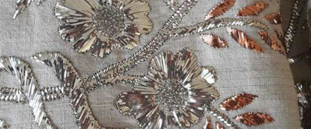 Mukaish is a shimmering embroidery embellishment used with chikankari. It is known for its distinctive pattern and shine. Also known as Kamdani or Fardi ka kaam, this glittering embroidery has been a part of the ancient Lakhnavi culture and tradition. Mukaish work embroidery is done with drawn, flattened, lightweight metal threads called badla.