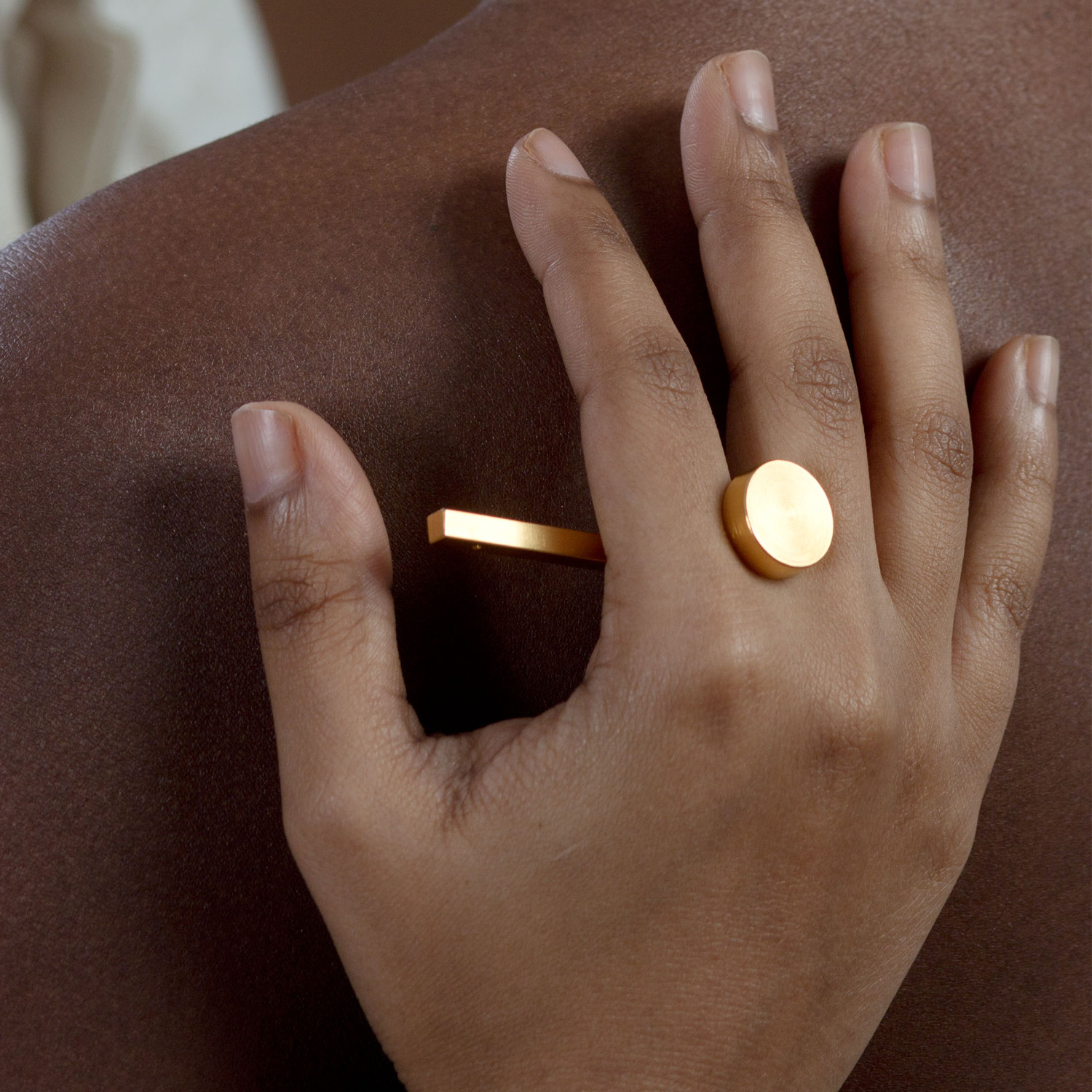 ₹ 3,400 (10% off)This ring is crafted from high-quality brass with gold plating and a protective top coating. It radiates a luxurious gold color and features a sleek design. Pair it with a crisp white shirt and tailored trousers for an understated look.