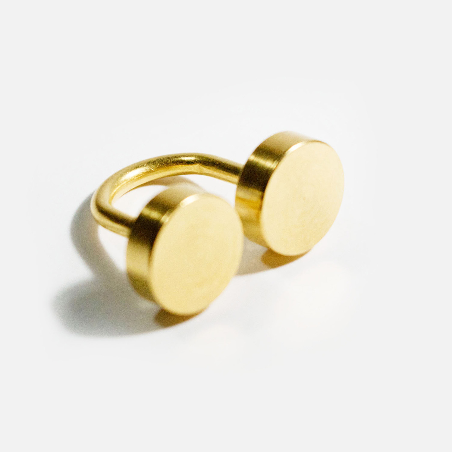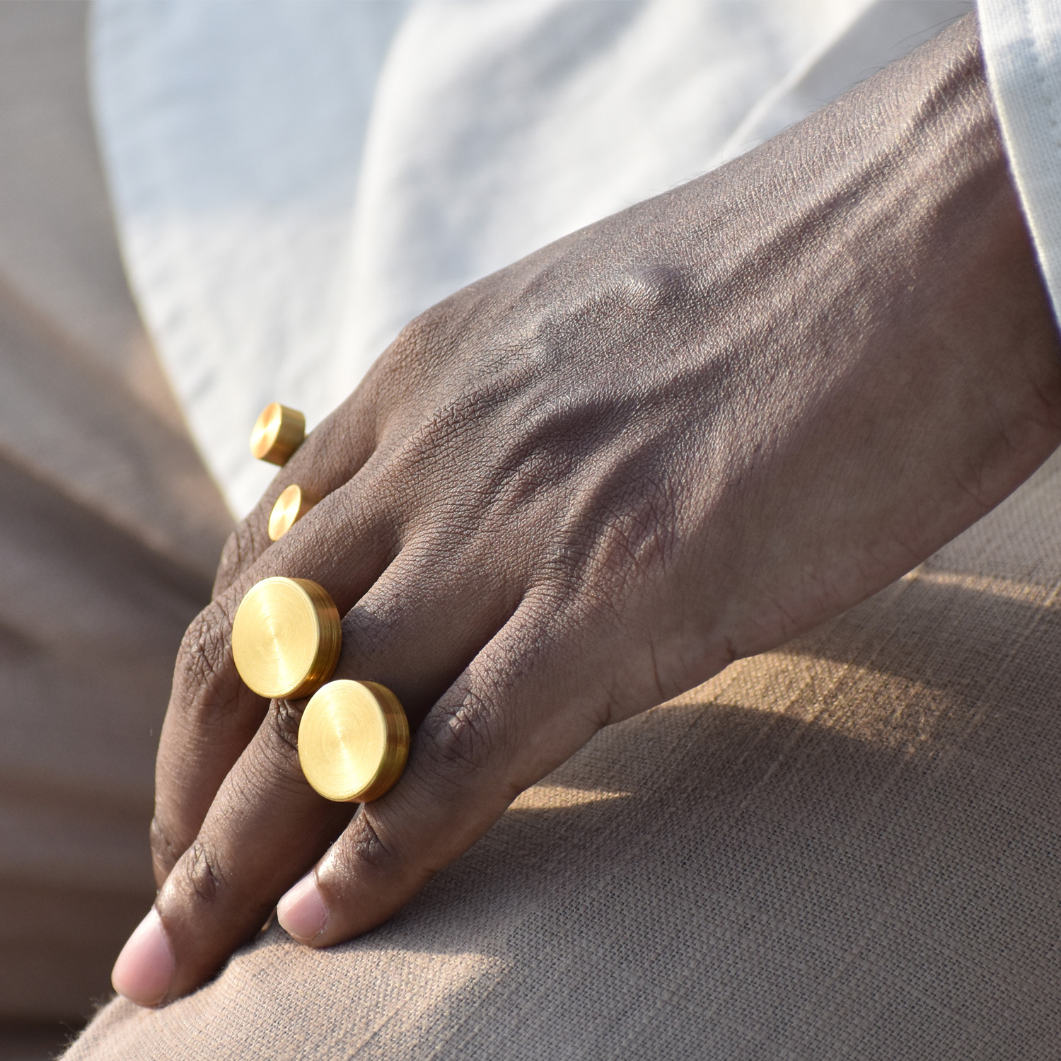 ₹ 3,400 (10% off)Crafted from brass with genuine gold plating and a protective top coating, this U-shaped ring has a luxurious gold color that exudes opulence. It has an innovative design featuring buttons on top for seamless and convenient wear. Pair it with a classic black dress and heels for a chic look.