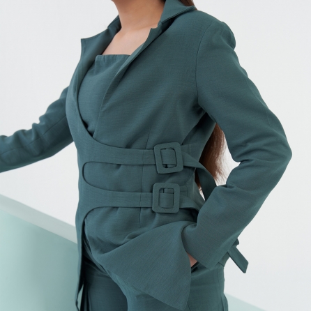 ₹ 28,500 (10% off)Experience ultimate style and versatility with this impeccable black 3-piece suit set. It includes a trendy bralette, exuding contemporary charm. The balloon pants offer a relaxed yet chic silhouette, while the travel jacket adds a touch of sophistication. Together, they form a captivating ensemble, perfect for making a fashion statement on any occasion.