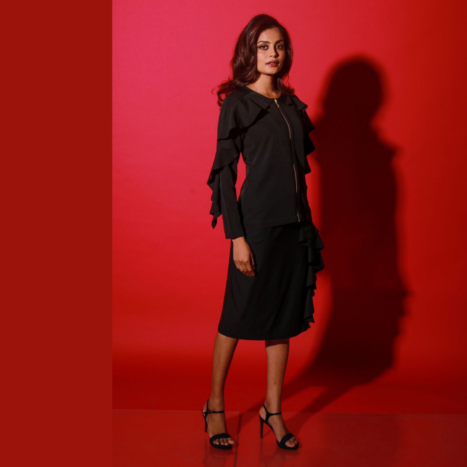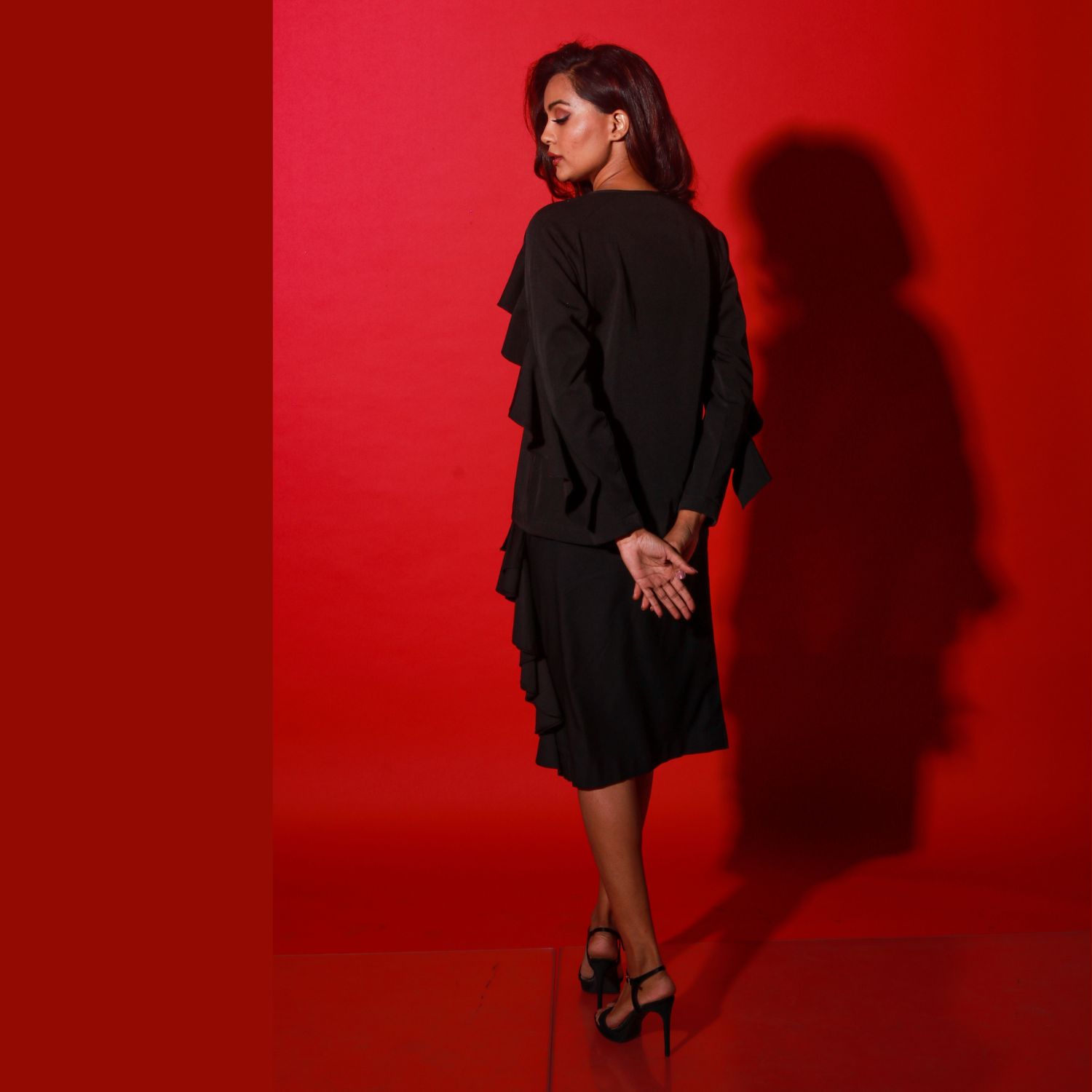 ₹ 6,200 (10% off)Indulge in romantic allure with our black top and long skirt ensemble. The frill feature gracefully cascades from the sleeves across the neck, adding a touch of femininity. Made with meticulous craftsmanship, this set embodies elegance and sophistication for any special occasion.