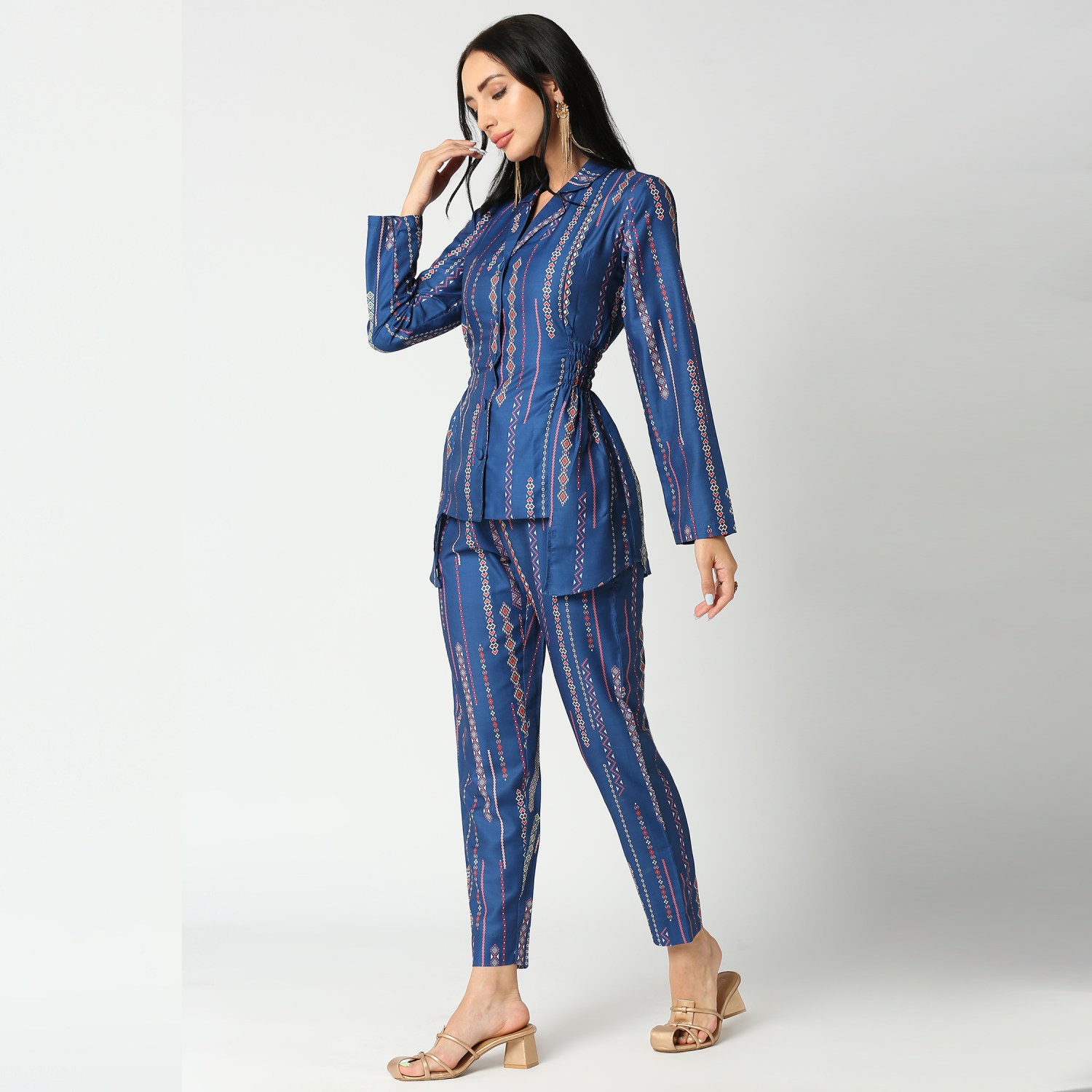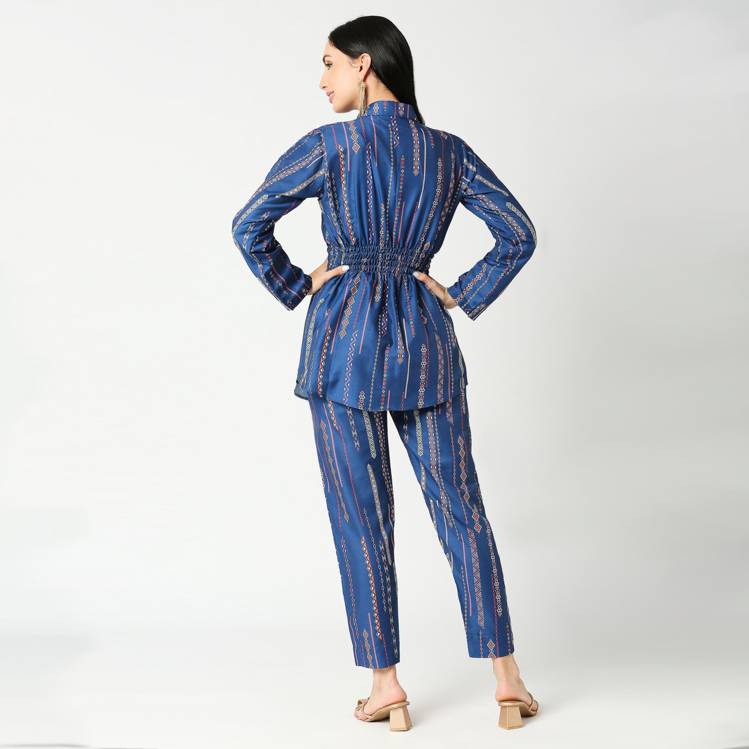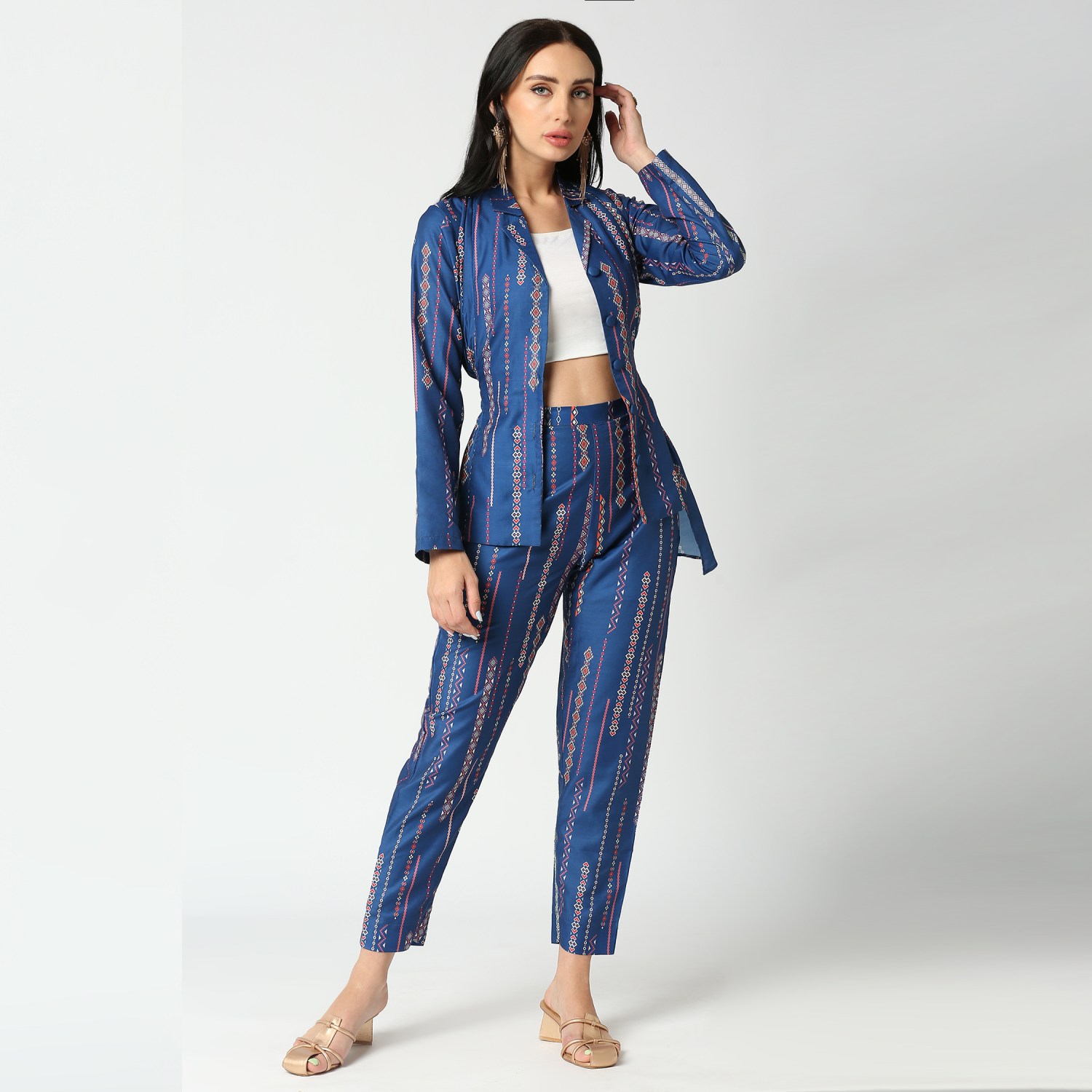 ₹ 11,000 (10% off)The kurta features a vibrant cobalt blue patola stripe print with gota, sequins, and cutdana embroidery. Paired with cobalt blue patola printed pants, this ensemble offers both style and comfort. Style this outfit with metallic or embellished heels for a dressy evening event.
