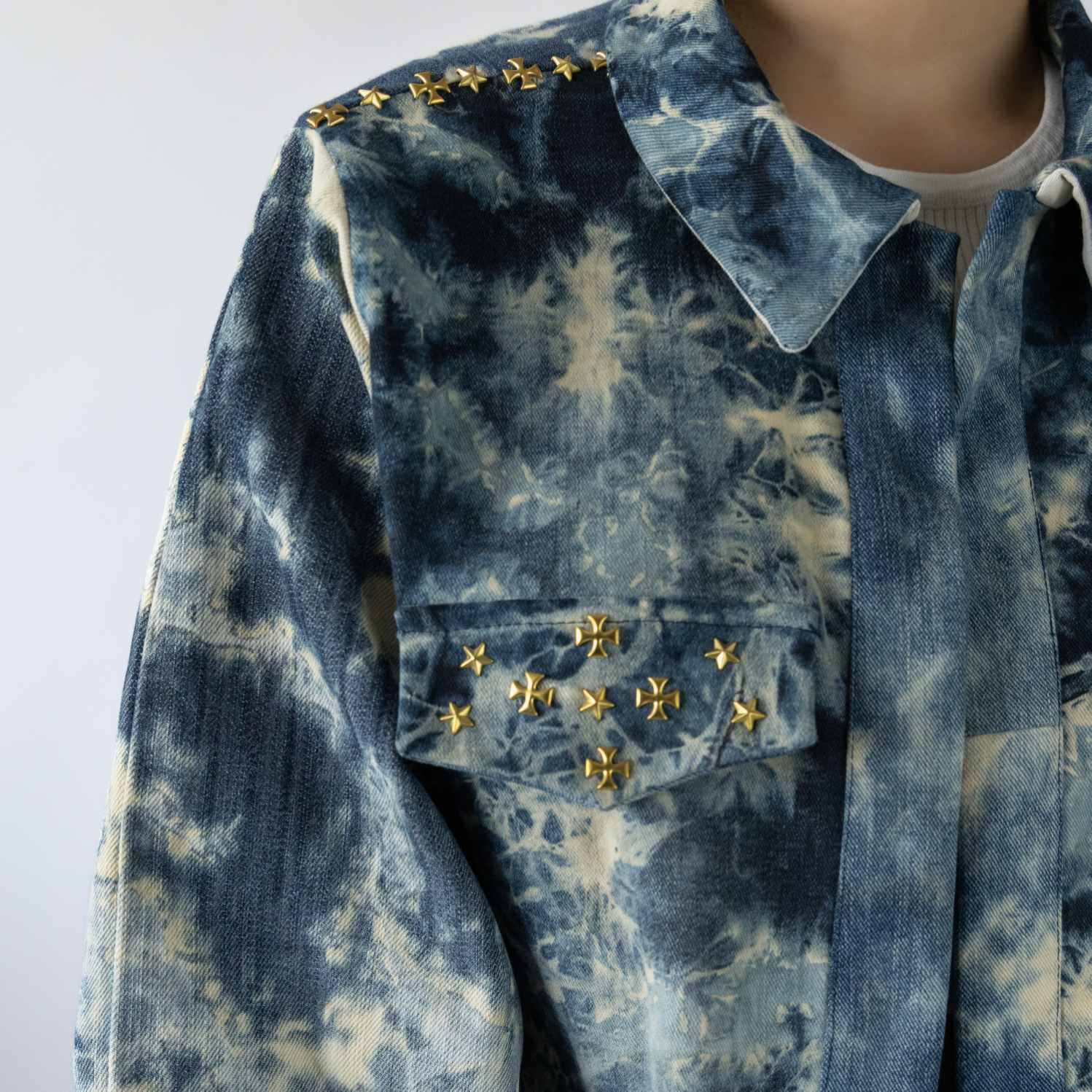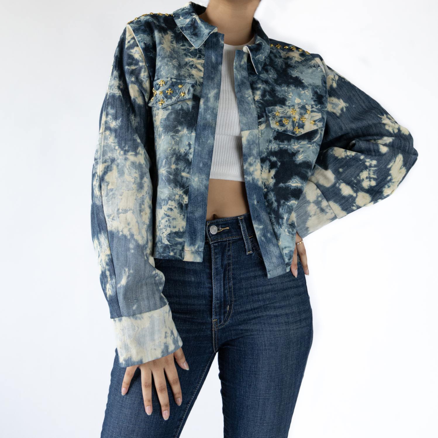 ₹ 8,200 (10% off)This dappled jacket can take the most basic tank top and jeans combo and turn it into a head-turning outfit. This is an oversized jacket with balloon sleeves and gold stud detailing on pockets and the shoulders. You'll definitely stand out in the crowd while donning this unique piece.