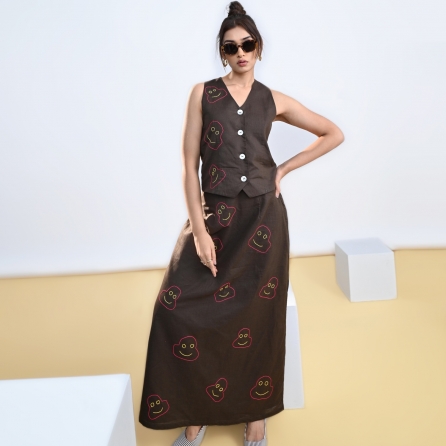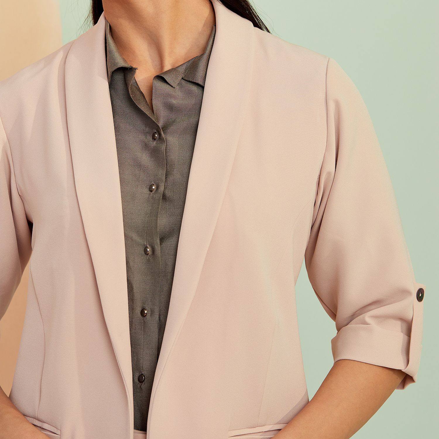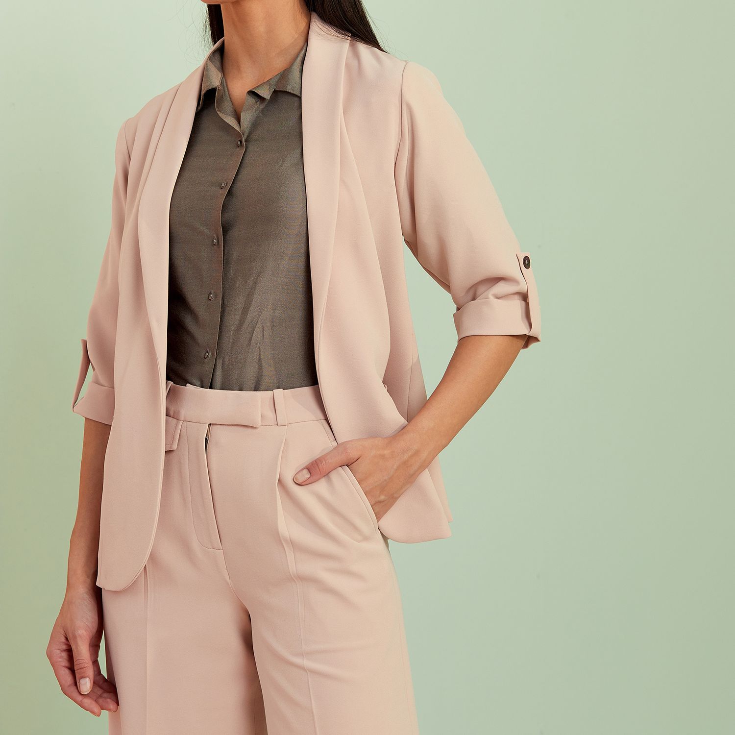 This suit is designed in a beautiful powder pink color, exuding femininity and grace. It is made from a comfortable and breathable blend of cotton and viscose, ensuring a pleasant wearing experience. The suit features a stylish and modern design, perfect for both casual and semi-formal occasions.