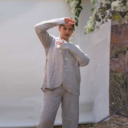Introducing this exquisitely embellished crepe top with cords, paired with a stylish bralette and georgette overlapped pants. This ensemble offers a perfect blend of sophistication and contemporary fashion. The embellishments and cords on the top add a touch of glamour, while the bralette and overlapped pants create a trendy and chic look. Elevate your wardrobe with this stunning combination for a unique and fashionable statement.