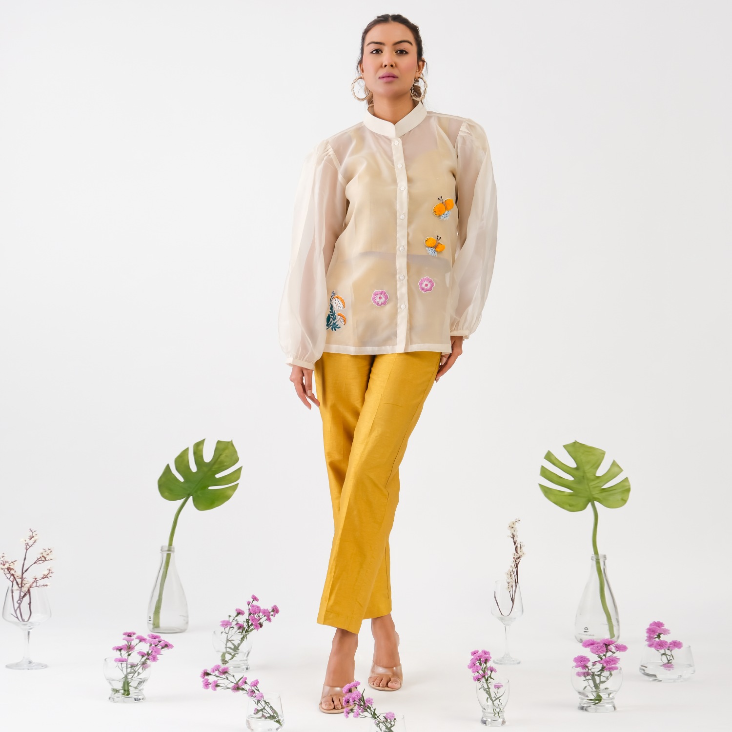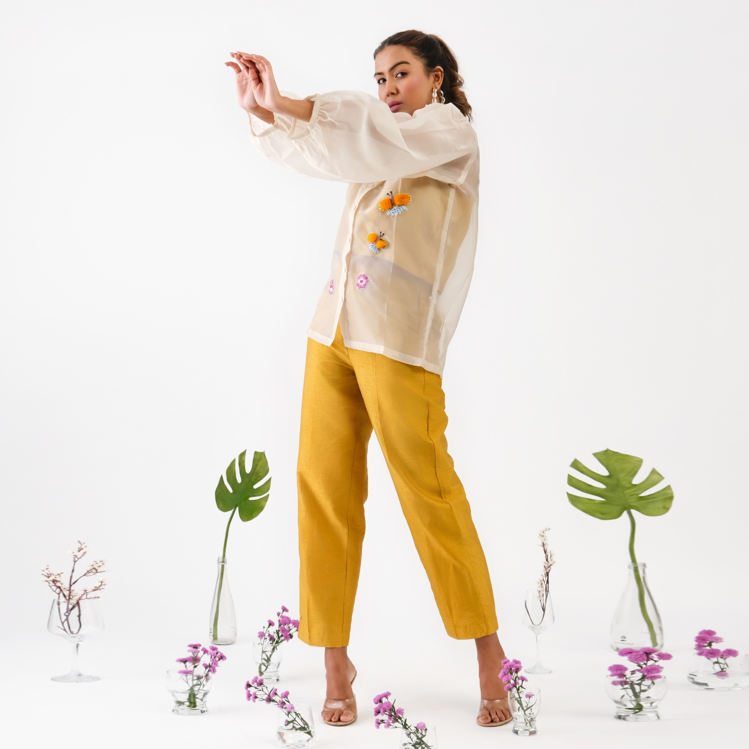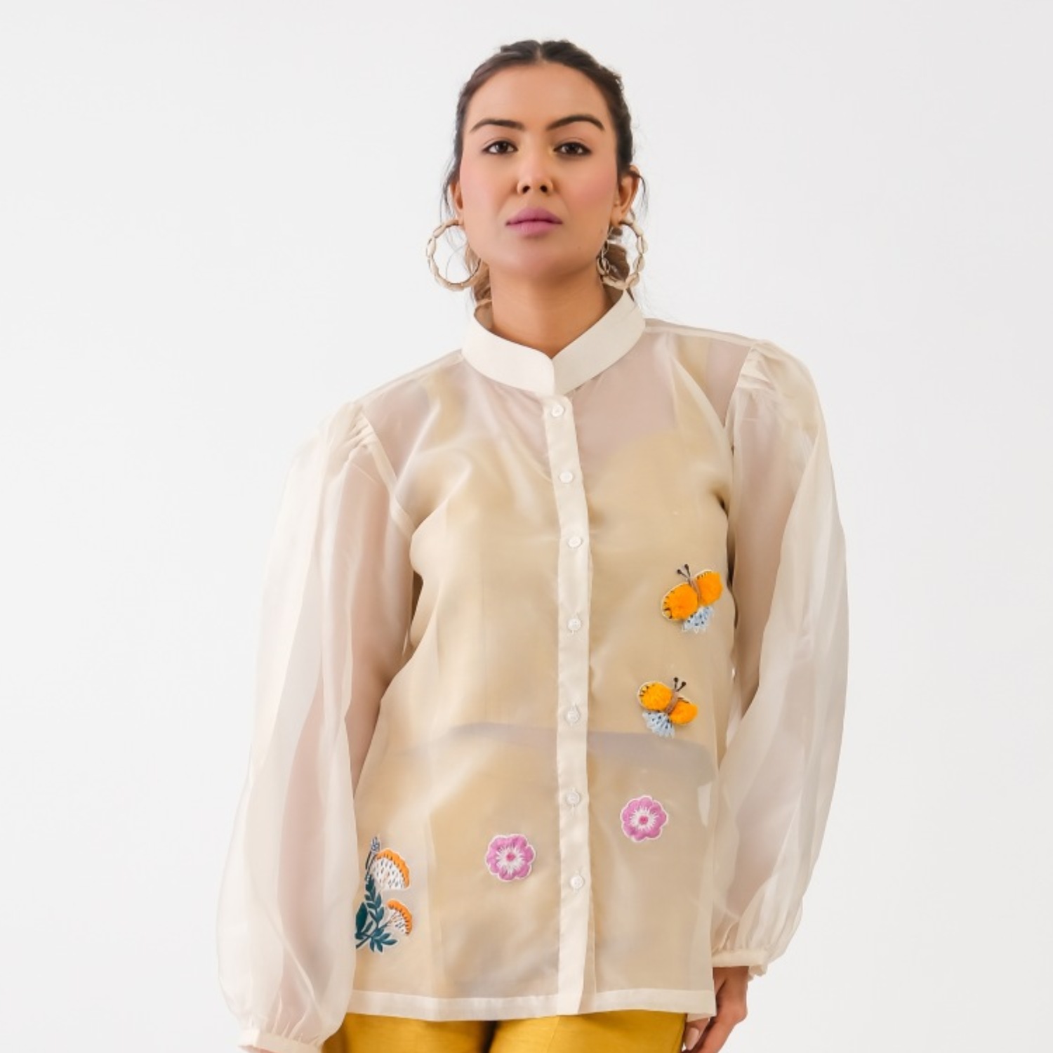 ₹ 9,599 (10% off)Crafted from high-quality and soft organza fabric, this set features a shirt adorned with exquisite 3D hand embroidery depicting a garden on the shirt. The yellow inner and bottom add a beautiful contrast to the look. Style it with statement gold earrings and heels for a dressy soiree.