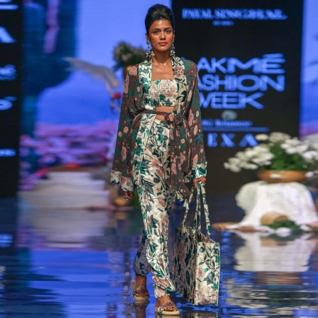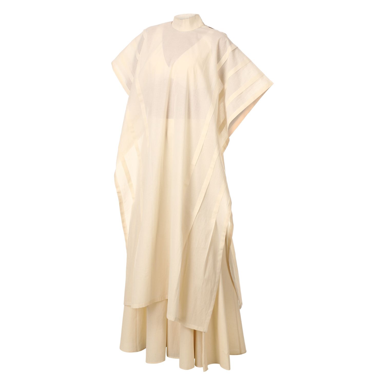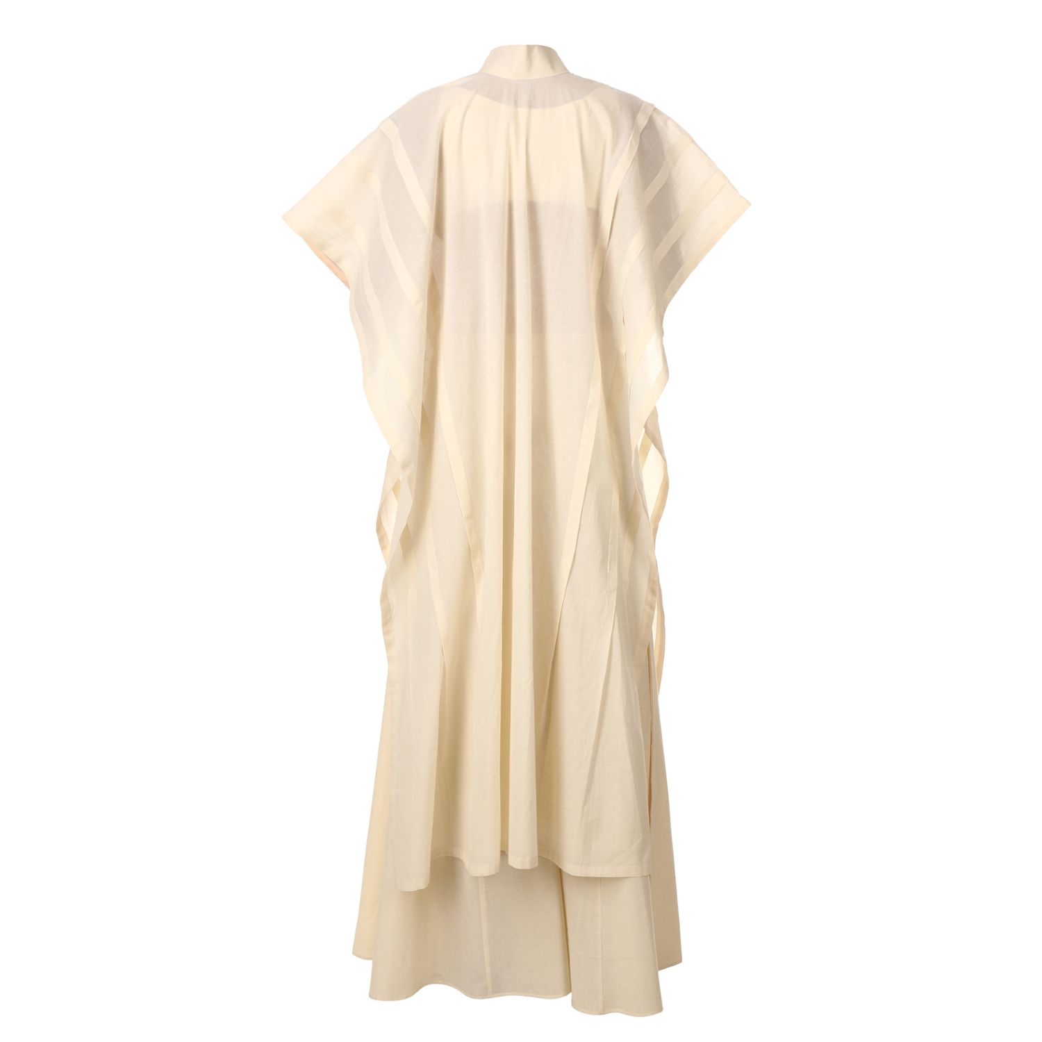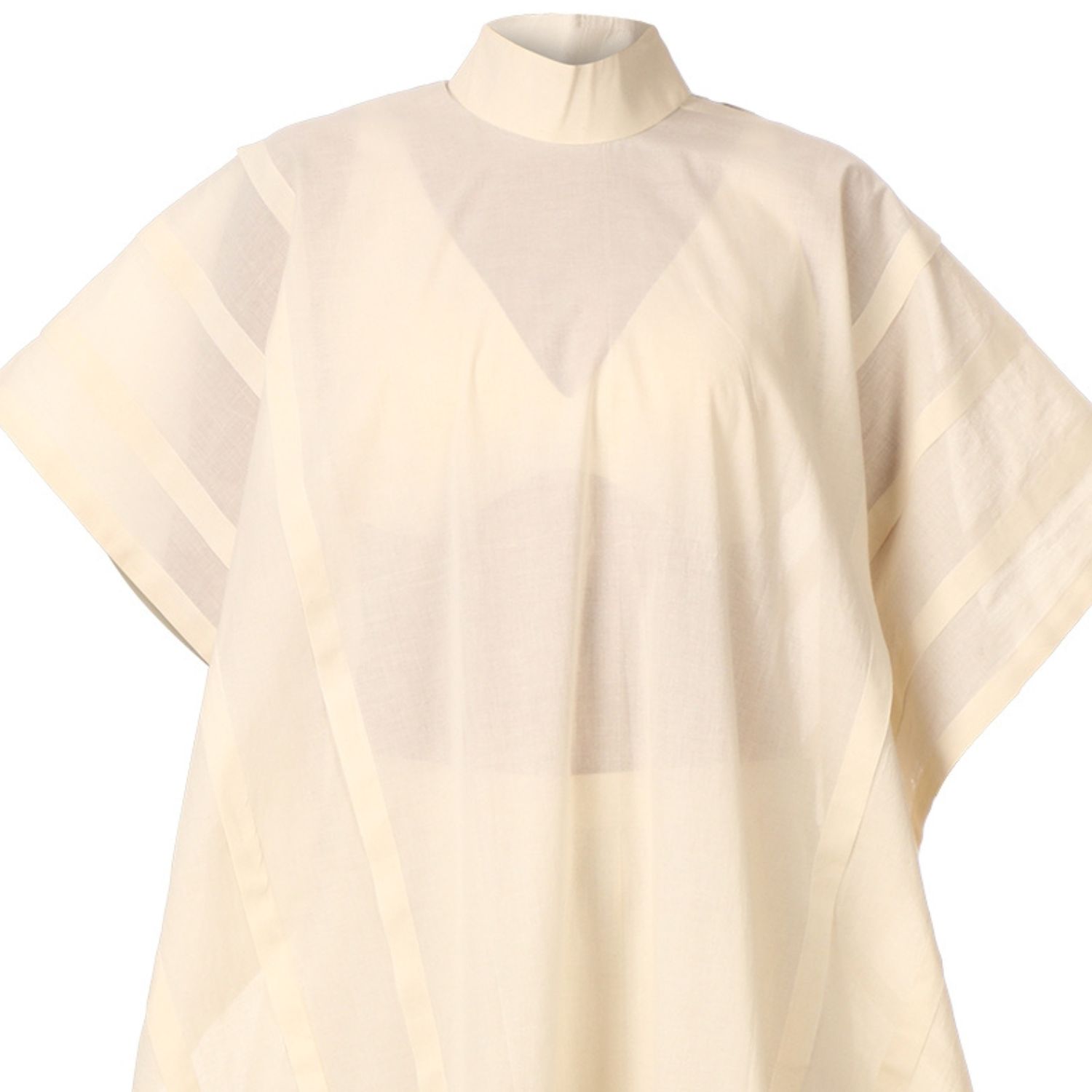 This is a great look for a special occasion! featuring an ivory cape paired with a v-neck blouse and kalidar sharara pants?made of organic cotton.