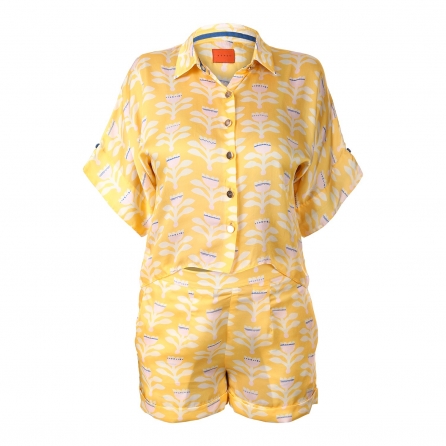 ₹ 4,999 (10% off)This gorgeous set is crafted from pure muslin fabric. It features a relaxed-fit shirt and pants in a refreshing mint green hue with delicate pink and red floral prints. Accessorize this outfit with statement earrings and heels for an evening party.