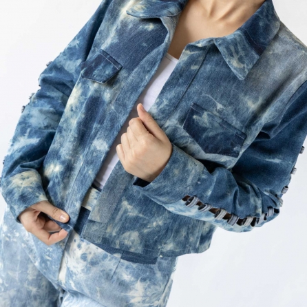 This lime blazer is crafted from luxurious modal satin and features an all-over blotch print. It comes with a notched lapel collar, full sleeves, and a front button closure for a polished look. Style it with minimal accessories and strappy heels for a dressy evening soiree.