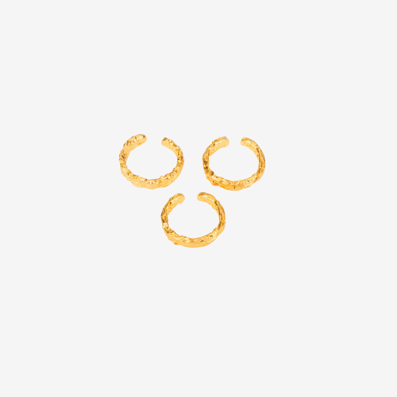 Luna stackable ring is an everlasting style, made for you to last through thick and thin. The key visual motif in this collection lies in the molten gold texture - welded and forged just for you. The Luna collection is inspired by the beauty of moon coming straight from heaven. It is carefully handcrafted by artisans in Jaipur in 18kt gold plated brass.