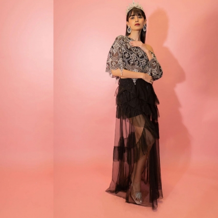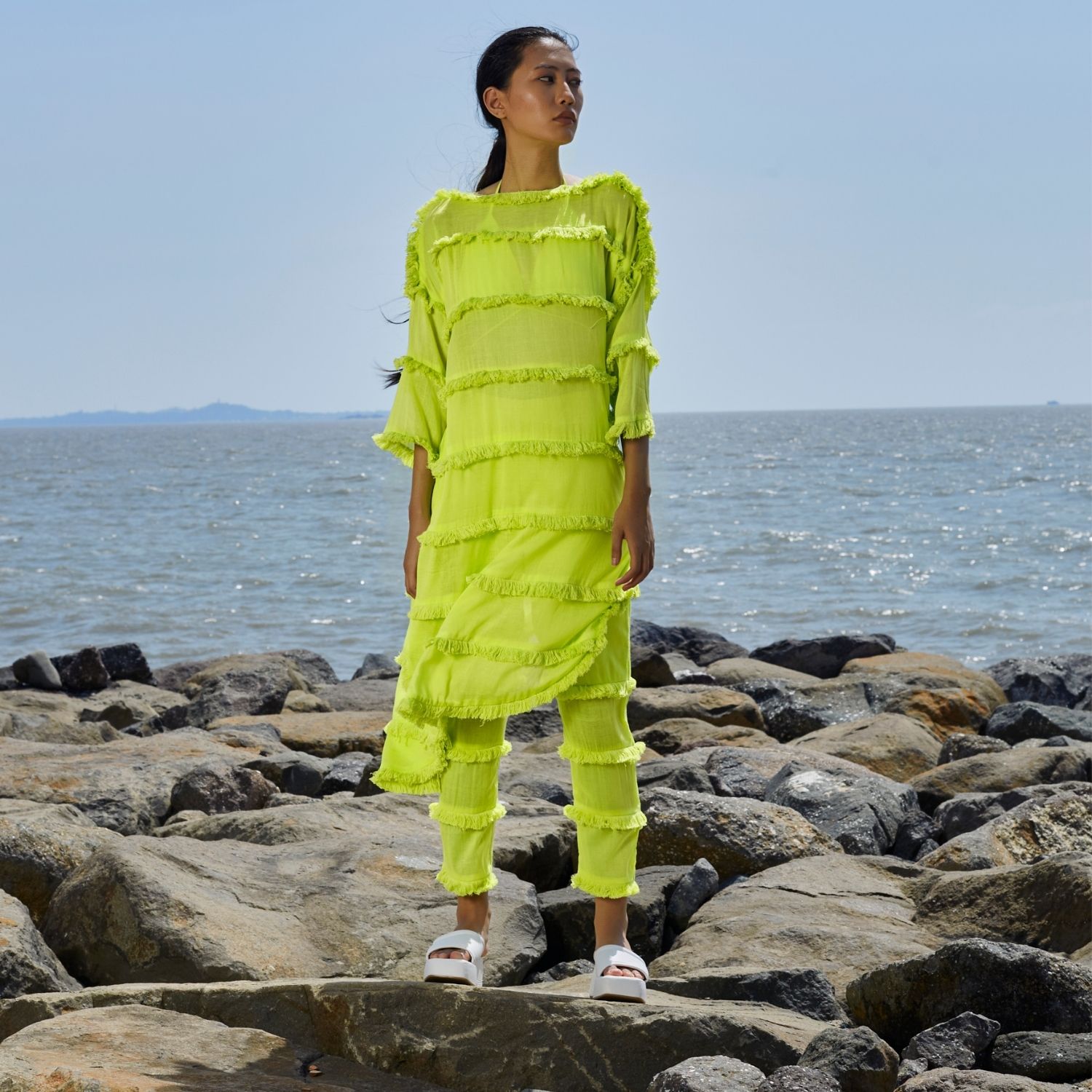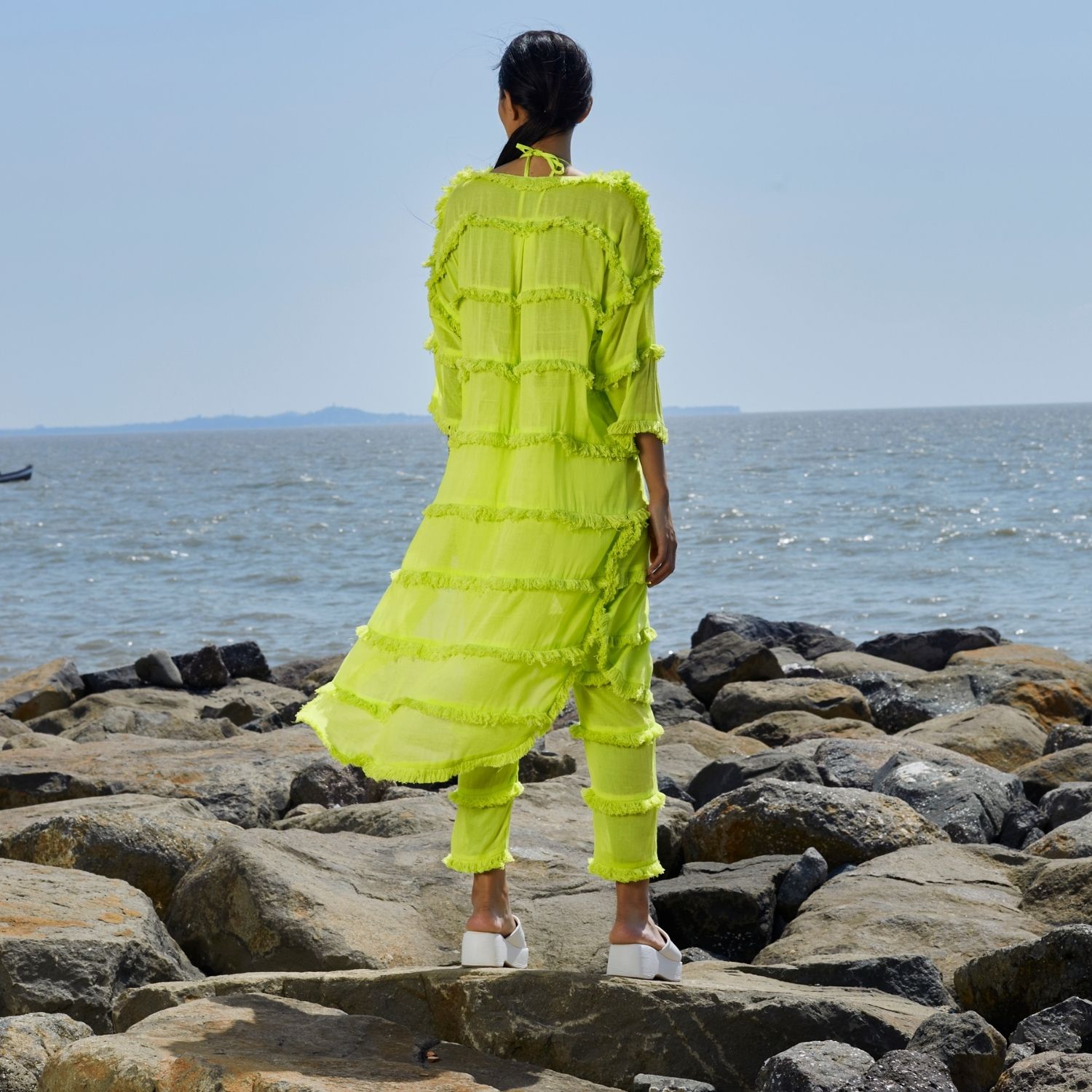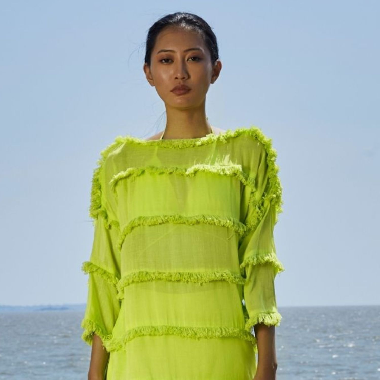 ₹ 28,800 (5% off)Elevate your style with this captivating ensemble featuring an apple-cut tunic and pants. The neon green tunic showcases a flattering silhouette, while the pants offer side pockets for added convenience. Delightful tassel detailing at every tier adds a touch of bohemian charm, making this set a perfect blend of comfort, functionality, and trendy sophistication.