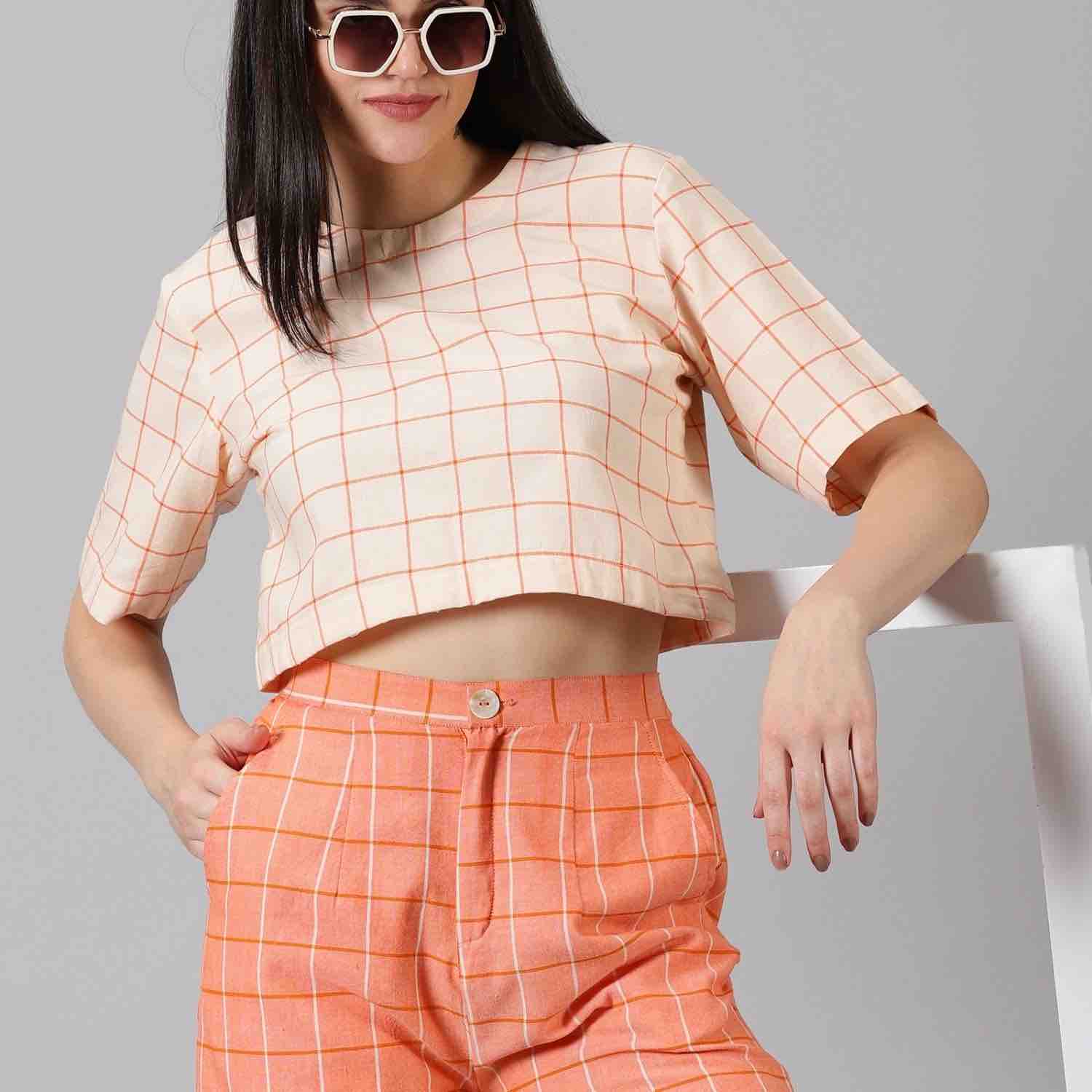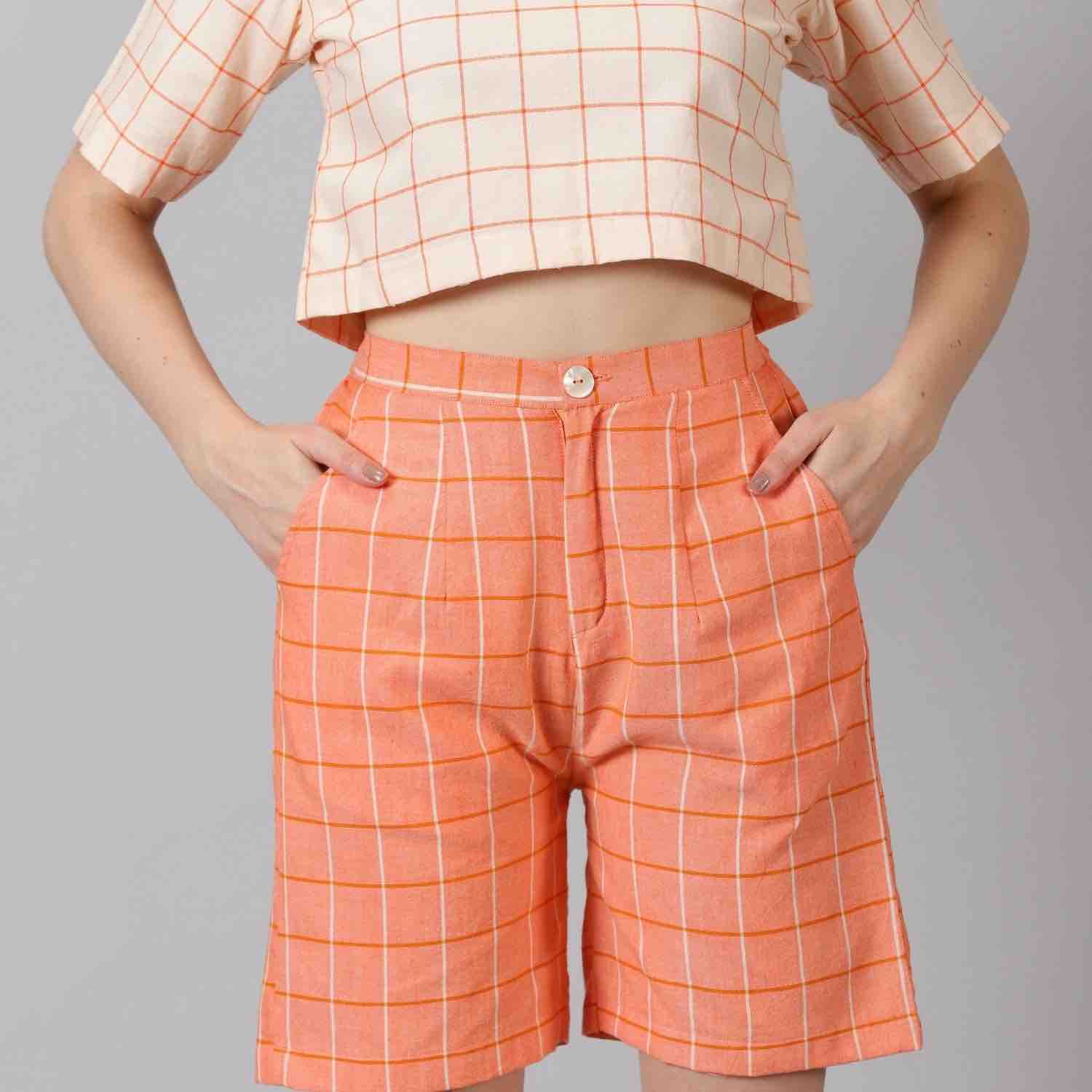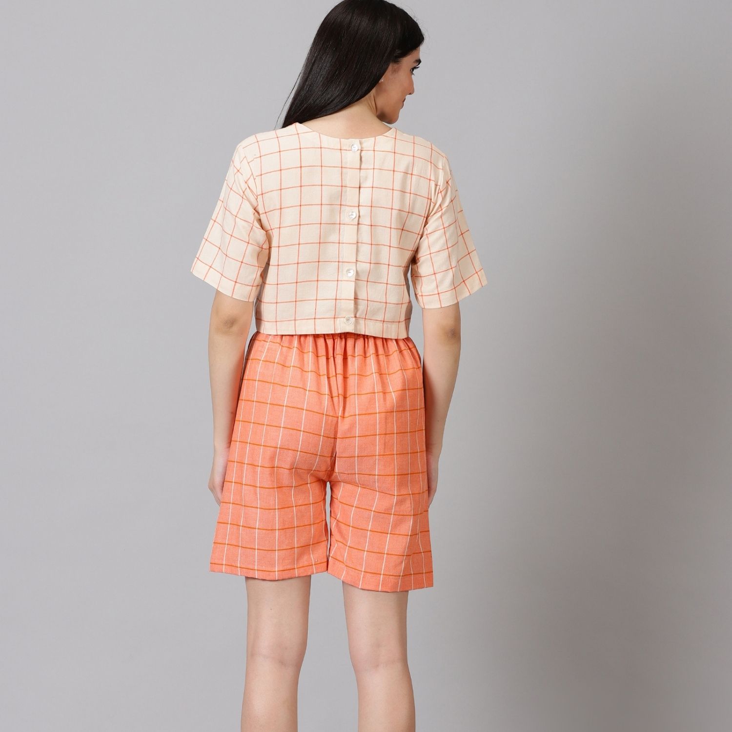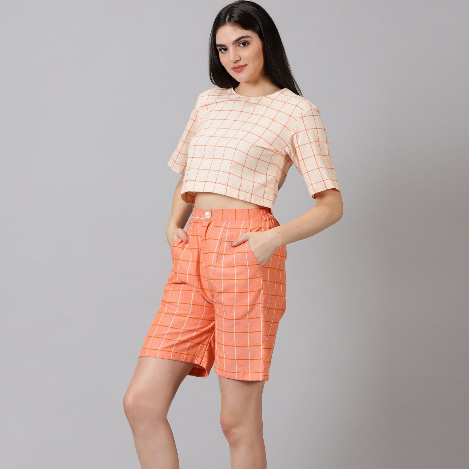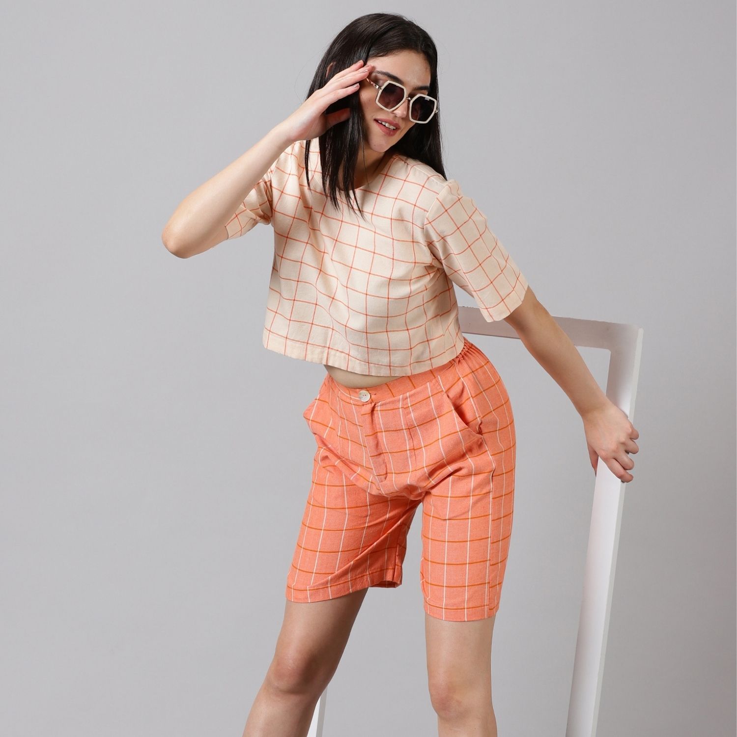 ₹ 3,750 (15% off)This summery checkered co-ord set is perfect for dayimt activities. The cropped top and high waisted shorts create a flattering silhouette. The two toned pastel colour palette make this piece a great choice. Style this set with sneakers for an effortless look.
