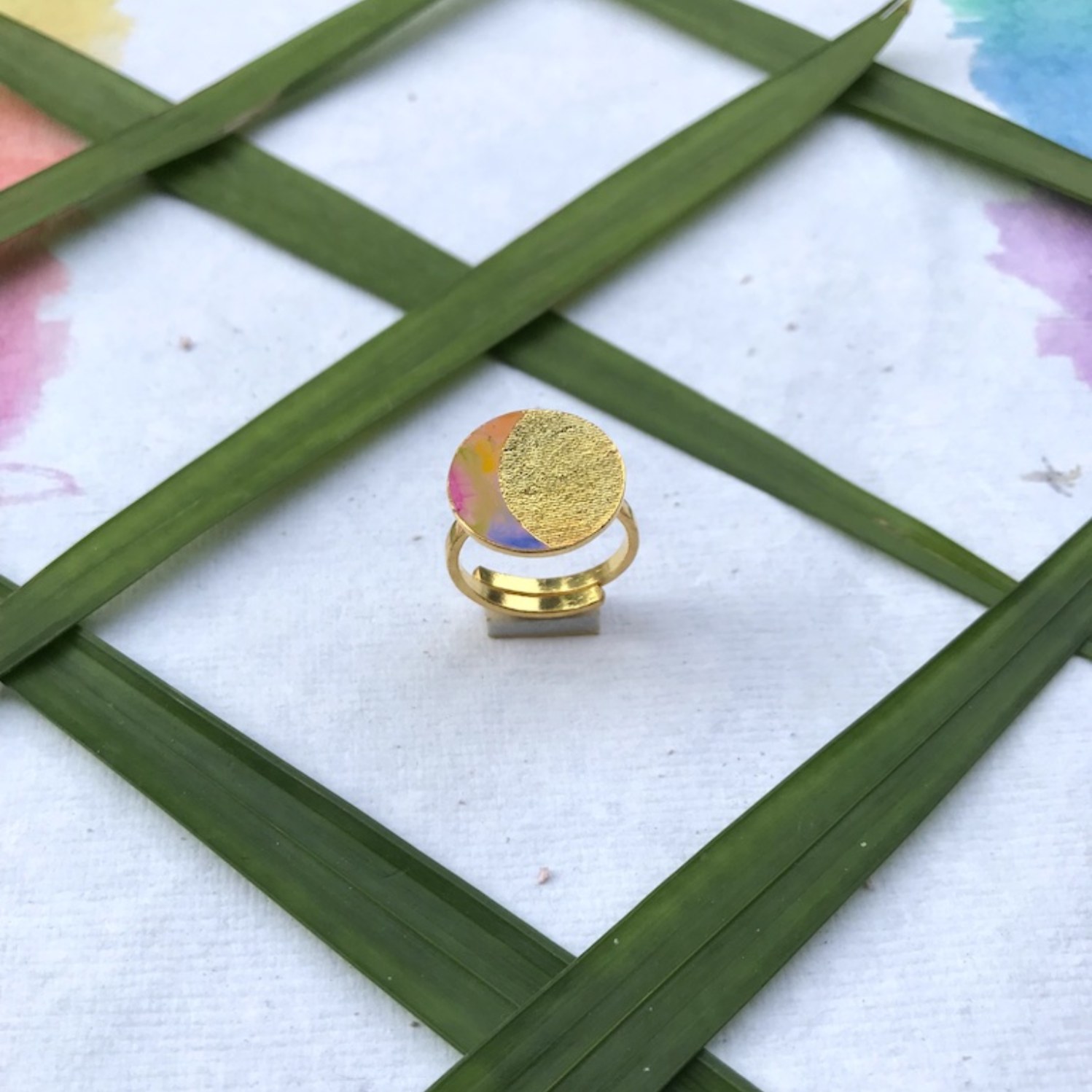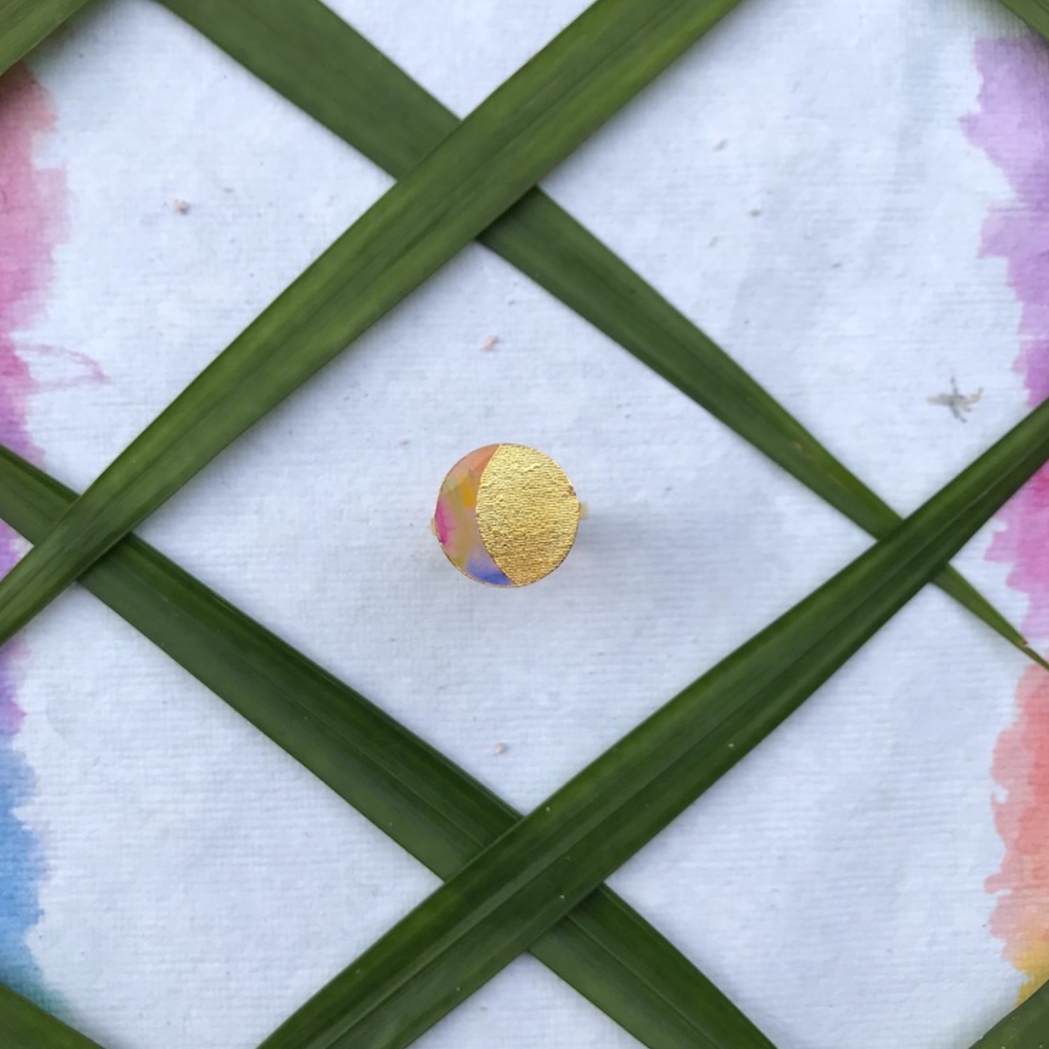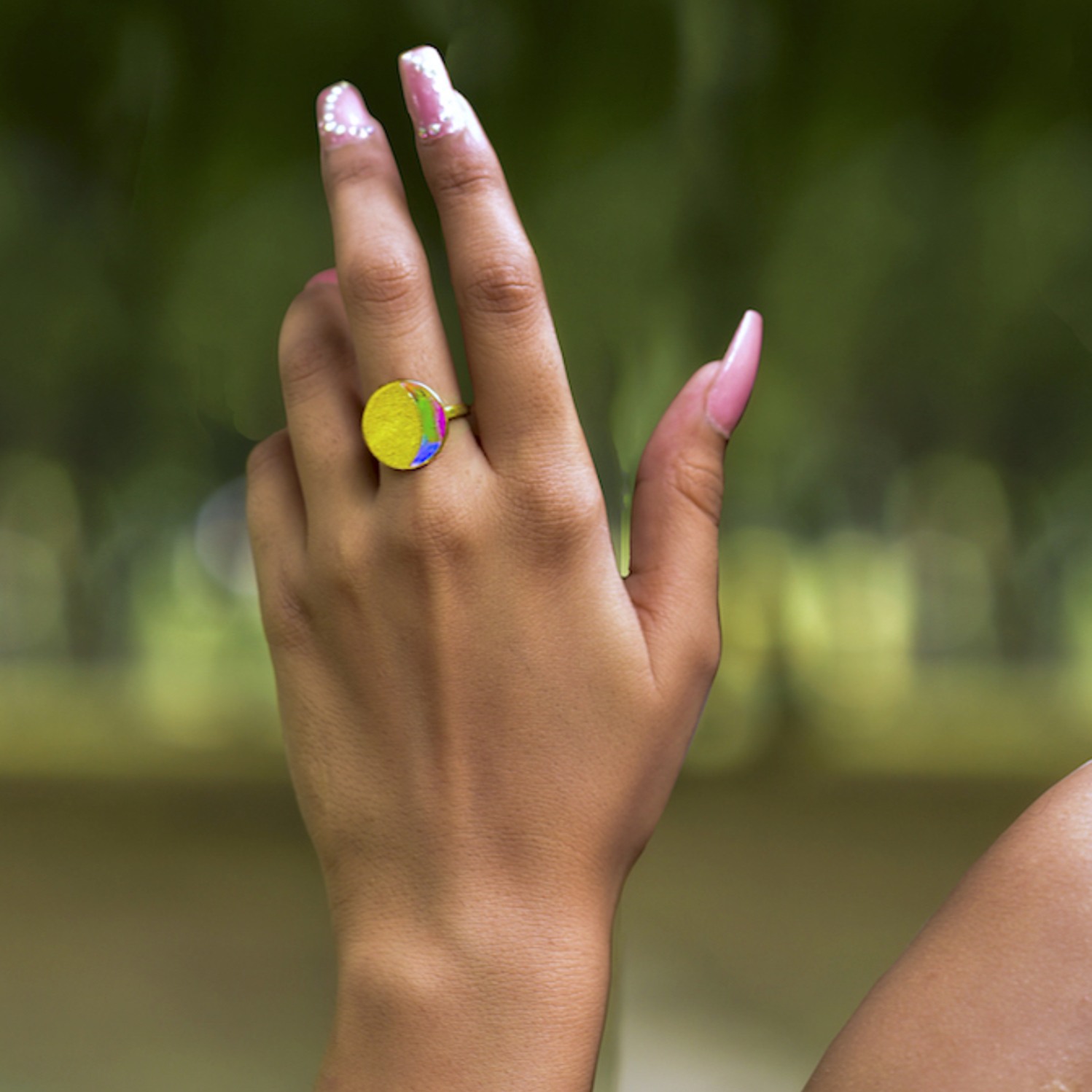 Crafted from top-quality brass material. With a play of minimal design and summer colours, this ring is inspired by the crescent moon. Glide this elemental piece for everyday effortless style.