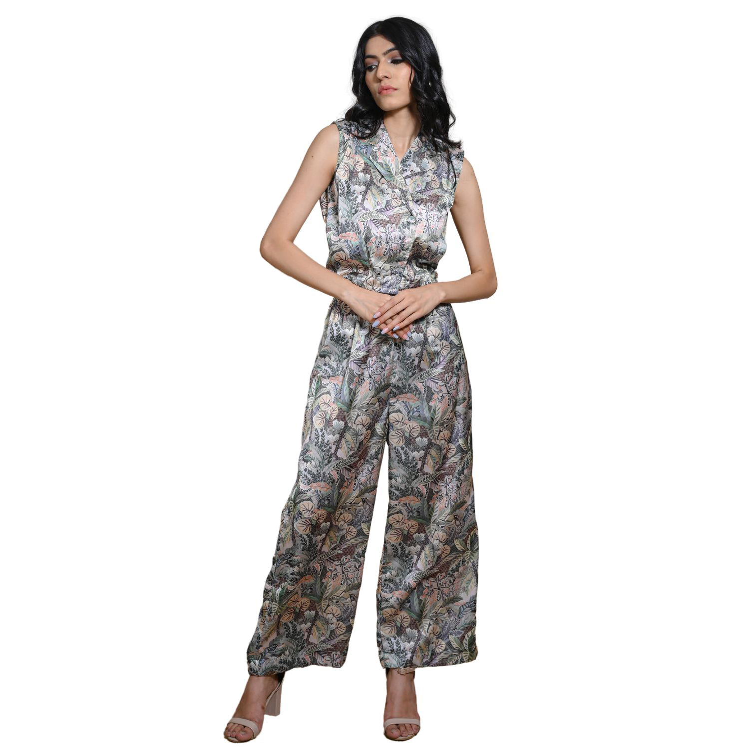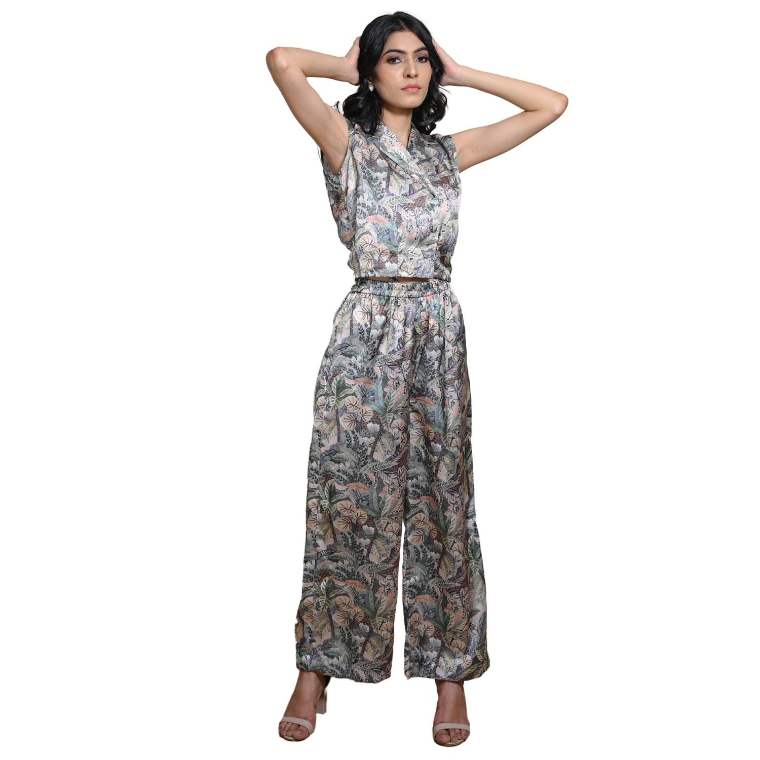 ₹ 5,099 (10% off)This stunning set features a sleeveless crop blazer with a tropical print and wide-leg pants. The double-breast crop blazer offers a modern and contemporary twist. Style this outfit with gold statement earrings and heels for a dressy evening event.