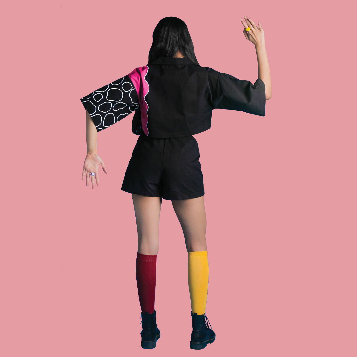 ₹ 5,219 (10% off)This stunning black jacket is crafted from high-quality twill fabric. It features a multicolored hand embroidered artwork, upcycled fabric patches, a box fit and kimono sleeves, adding uniqueness to the look. Style it with a tank top and heels for a dressy event.