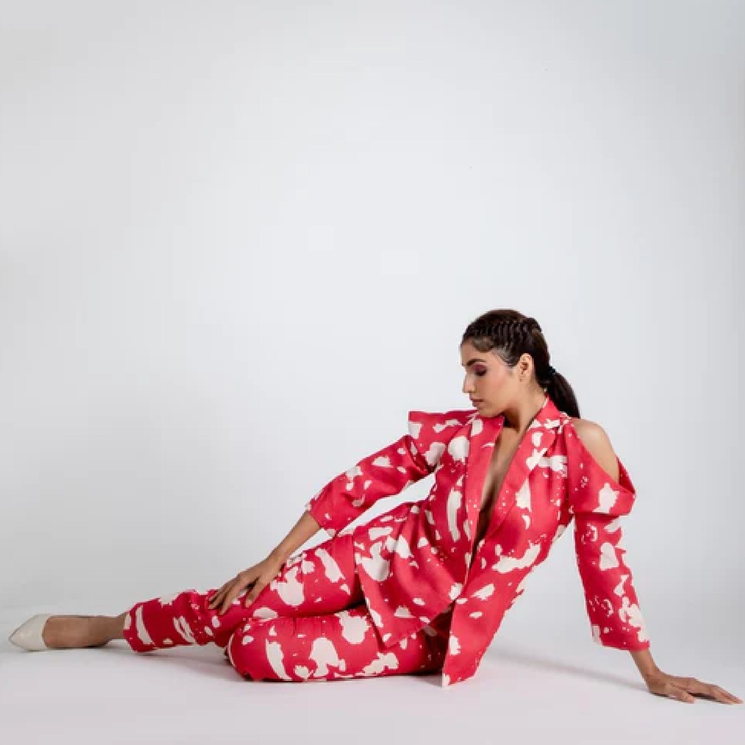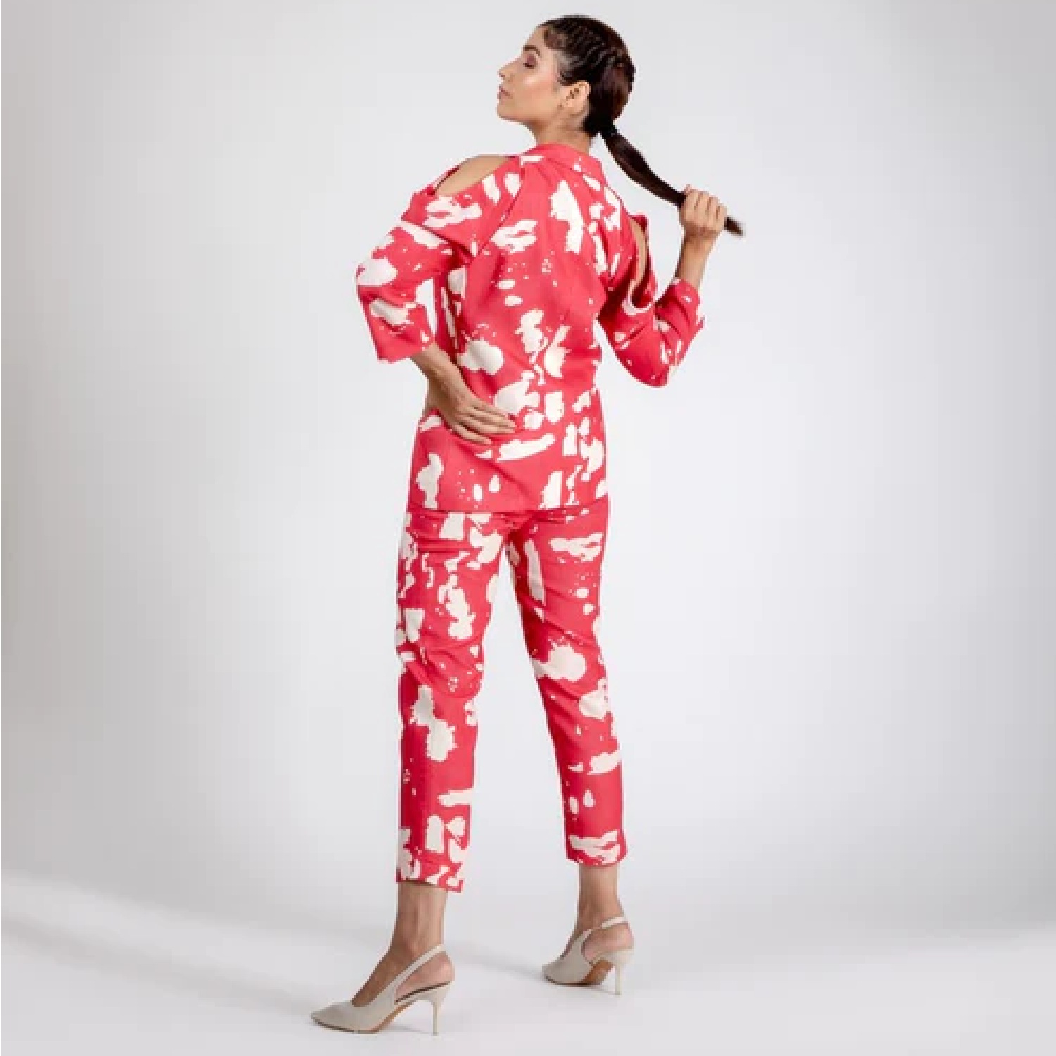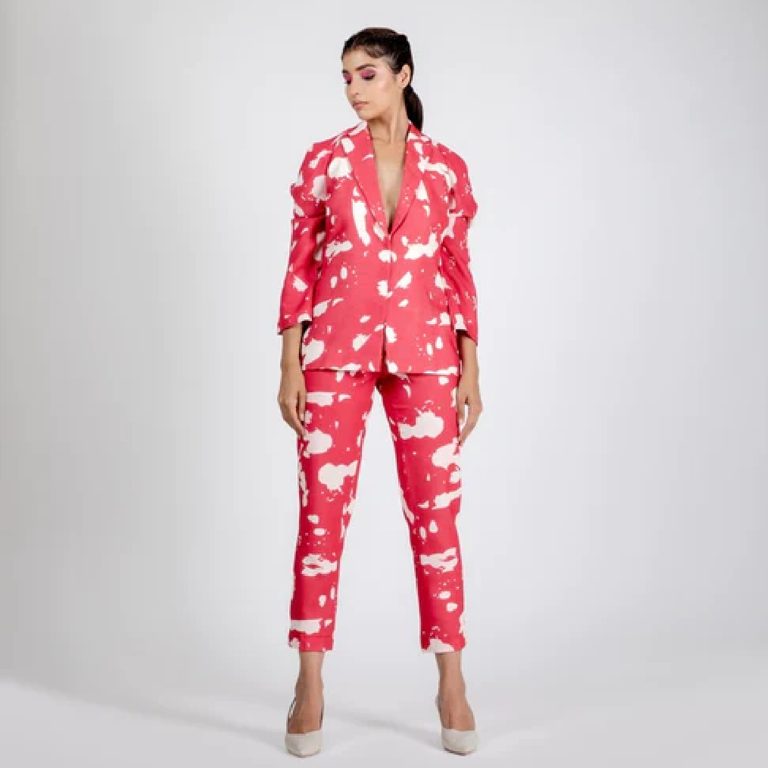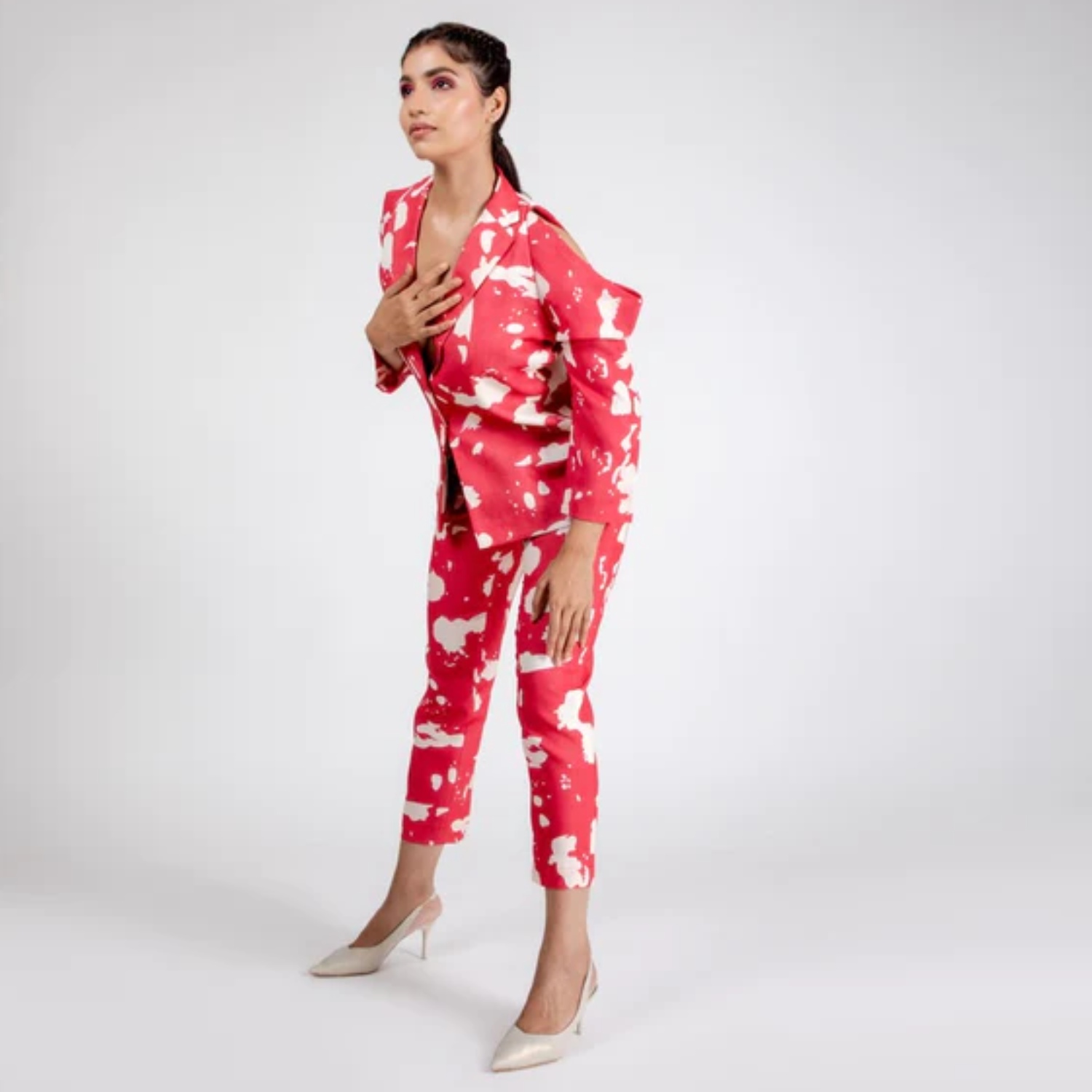 ₹ 4,900 (25% off)This stunning blazer is crafted from high-quality linen fabric. It features white prints on red base, three quarter sleeves and a fitted silhouette, offering a flattering look. Style it with minimal accessories and heels for a dressy event.