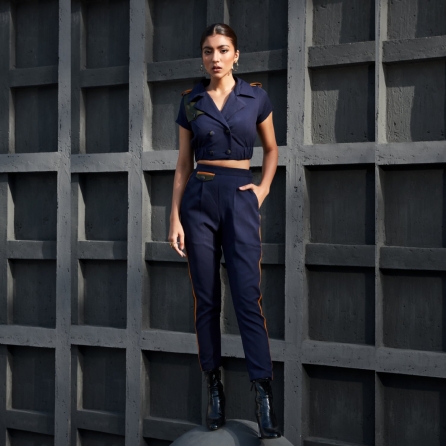 ₹ 17,750 (10% off)Introducing this captivating set featuring a smocked racer back top, striped red pants, and shuffle jacket, all crafted from hand-woven cotton. The wide leg pants provide comfort with elastic detailing at the back and practical pockets. The smocked fabric of the top ensures a perfect fit. Wear these pieces together for an edgy look or style them separately to achieve a more casual vibe. Embrace versatility and effortlessly elevate your style with this exquisite set.