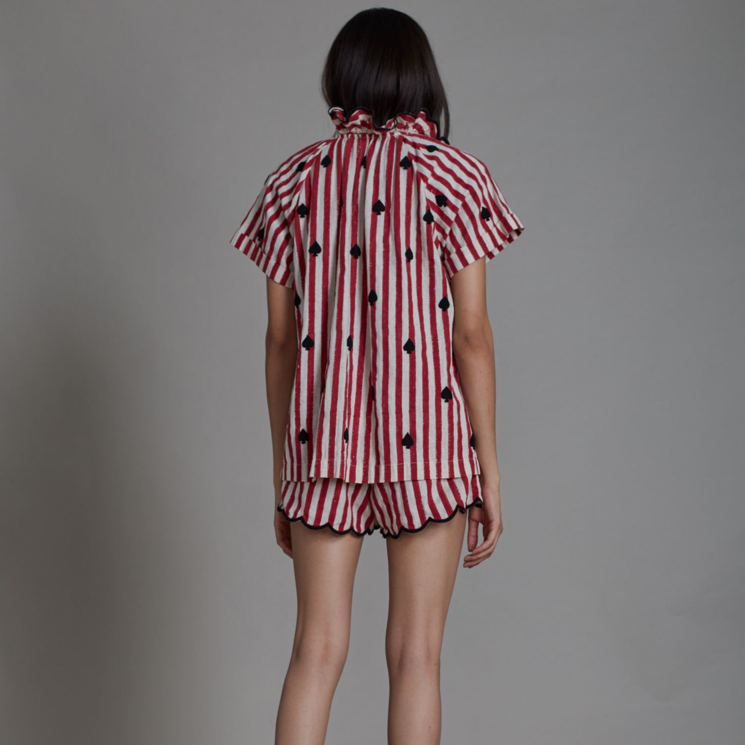 ₹ 14,500 (10% off)Upgrade your wardrobe with this stunning co-ord set, a perfect addition to your closet. The set showcases a hand block printed shirt with delicate scallop embroidery, paired with cute and well-fitted shorts. Complete with side and back pockets, and a fully elasticated waist for added comfort. Style this uber-cool set together for a cohesive look or mix and match for versatile styling options, allowing you to unleash your creativity and have fun with your outfits!