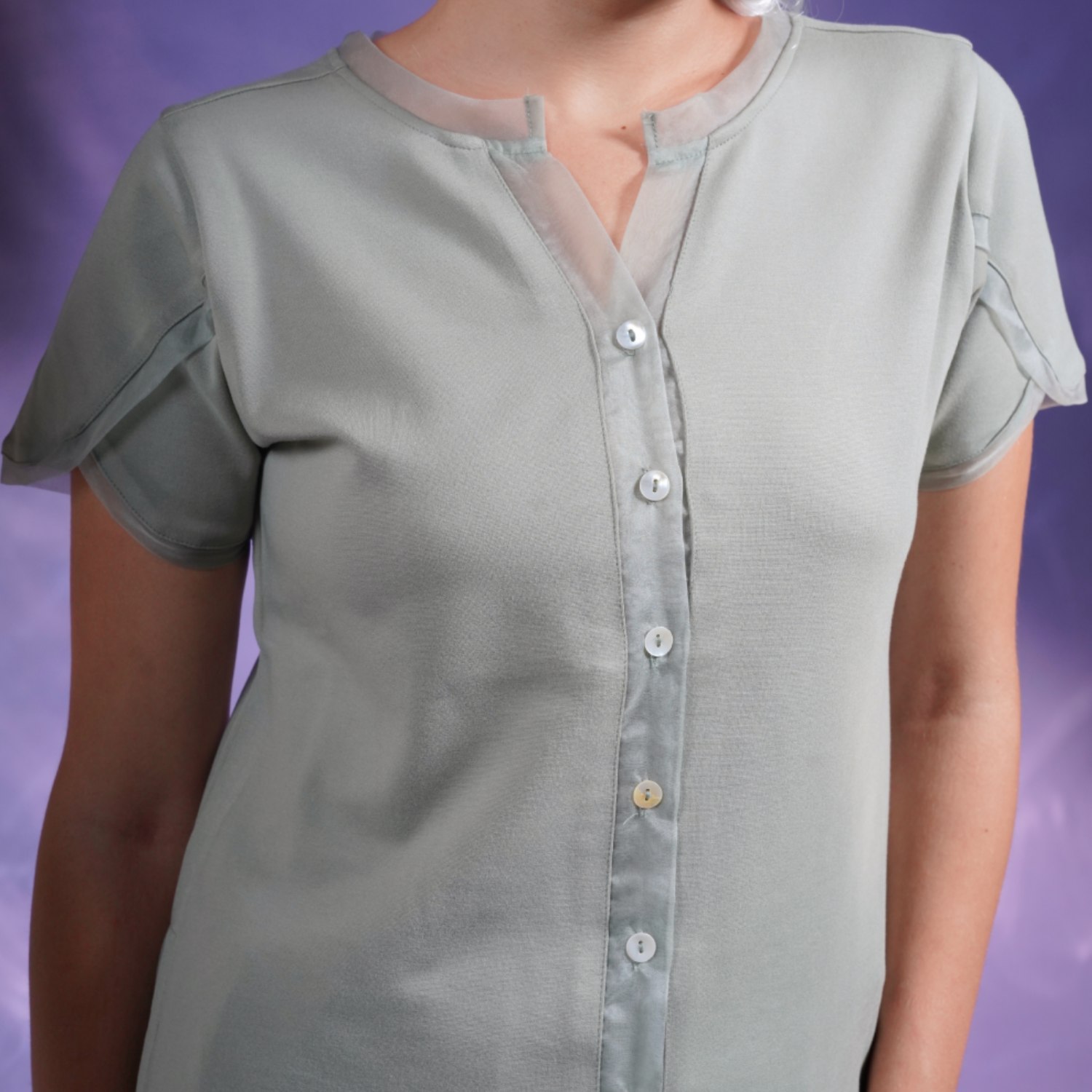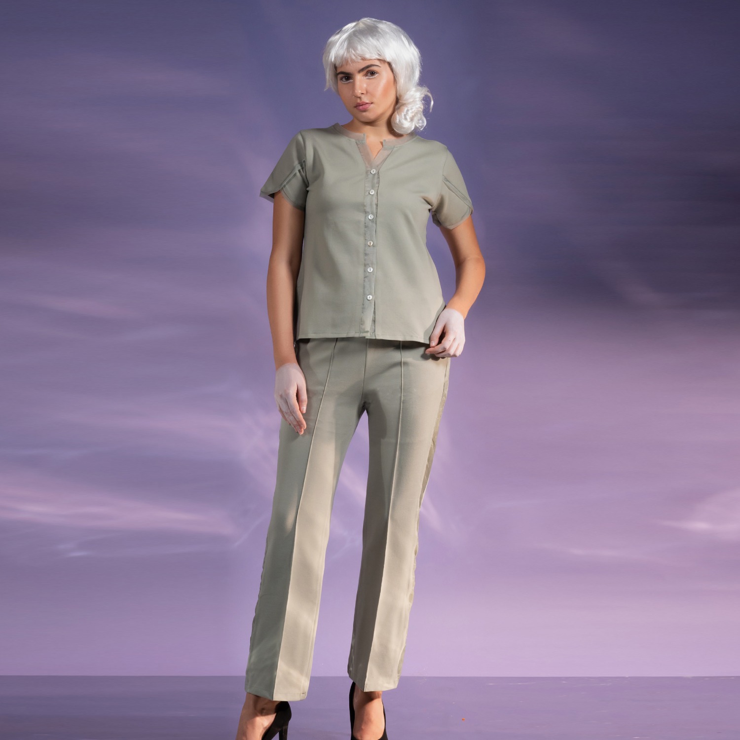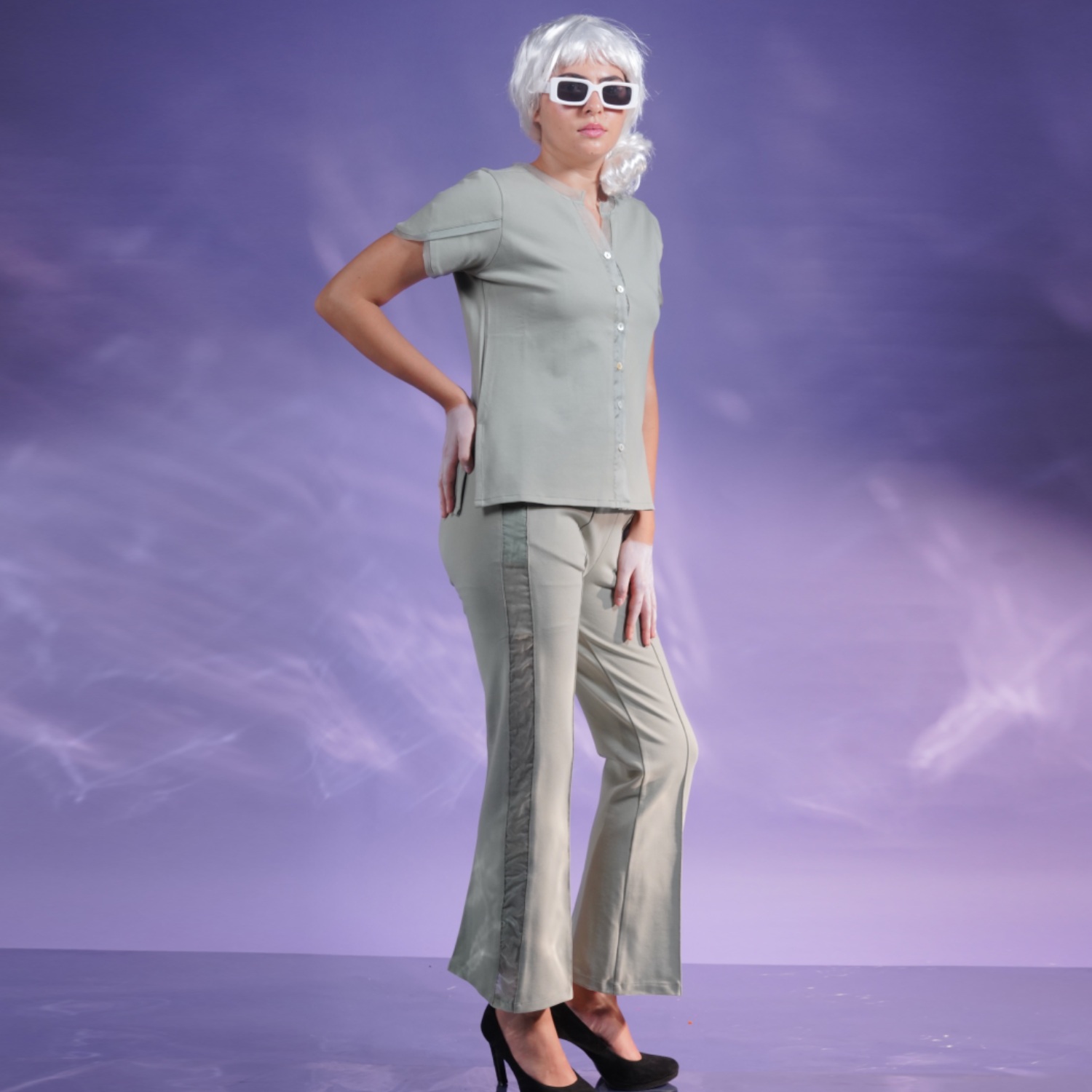 Upgrade your wardrobe with our exquisite daily duomo co-ord set. Crafted in a rich knitted fabric, this mint green statement piece offers an all-day fashionable look. With delicate organza collared tops and sleeve cuts, it perfectly pairs with matching elasticated pants, showcasing side organza detailing for an added touch of elegance.