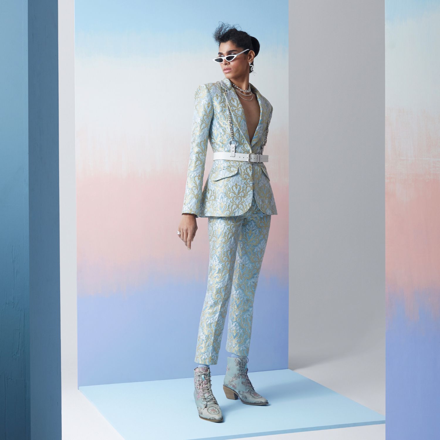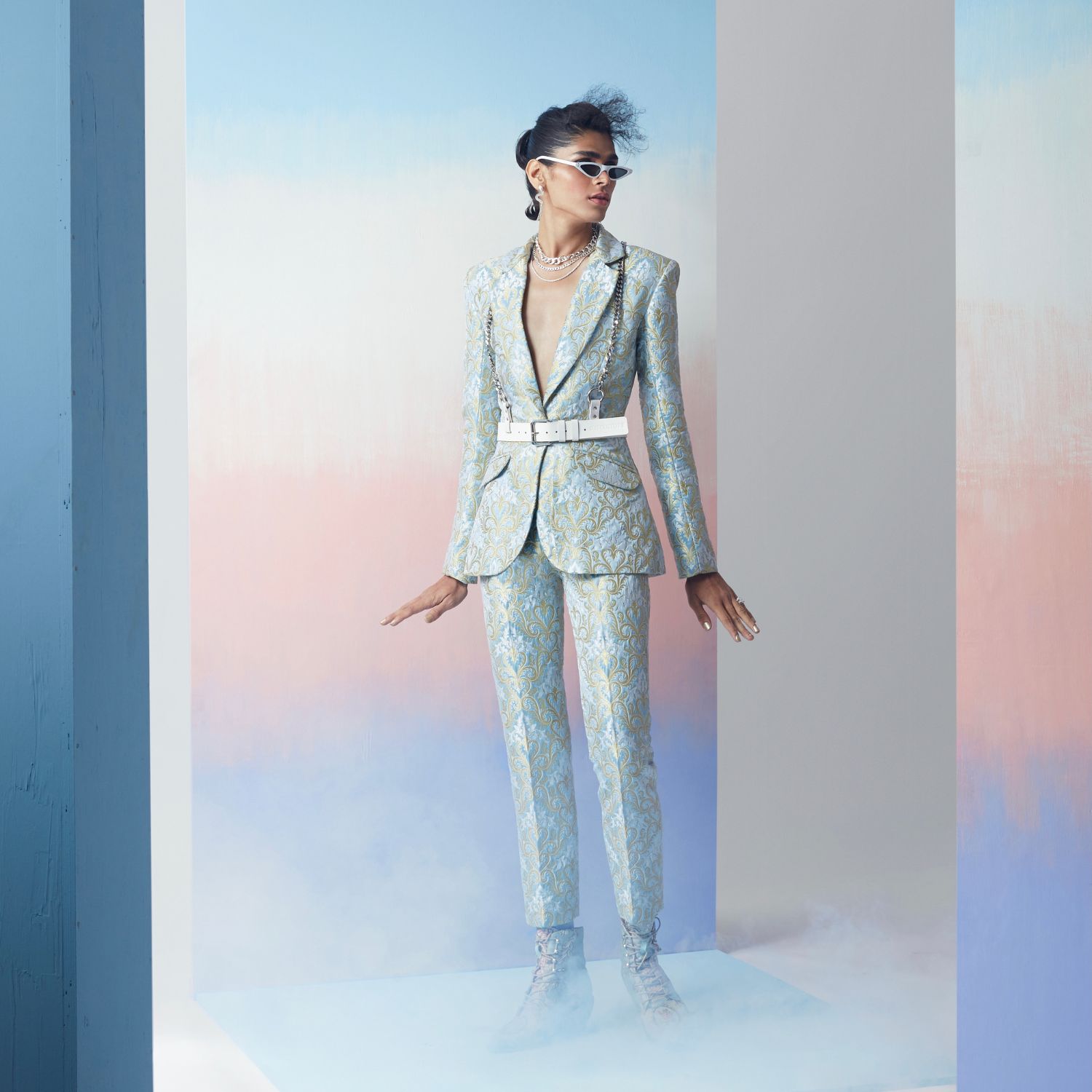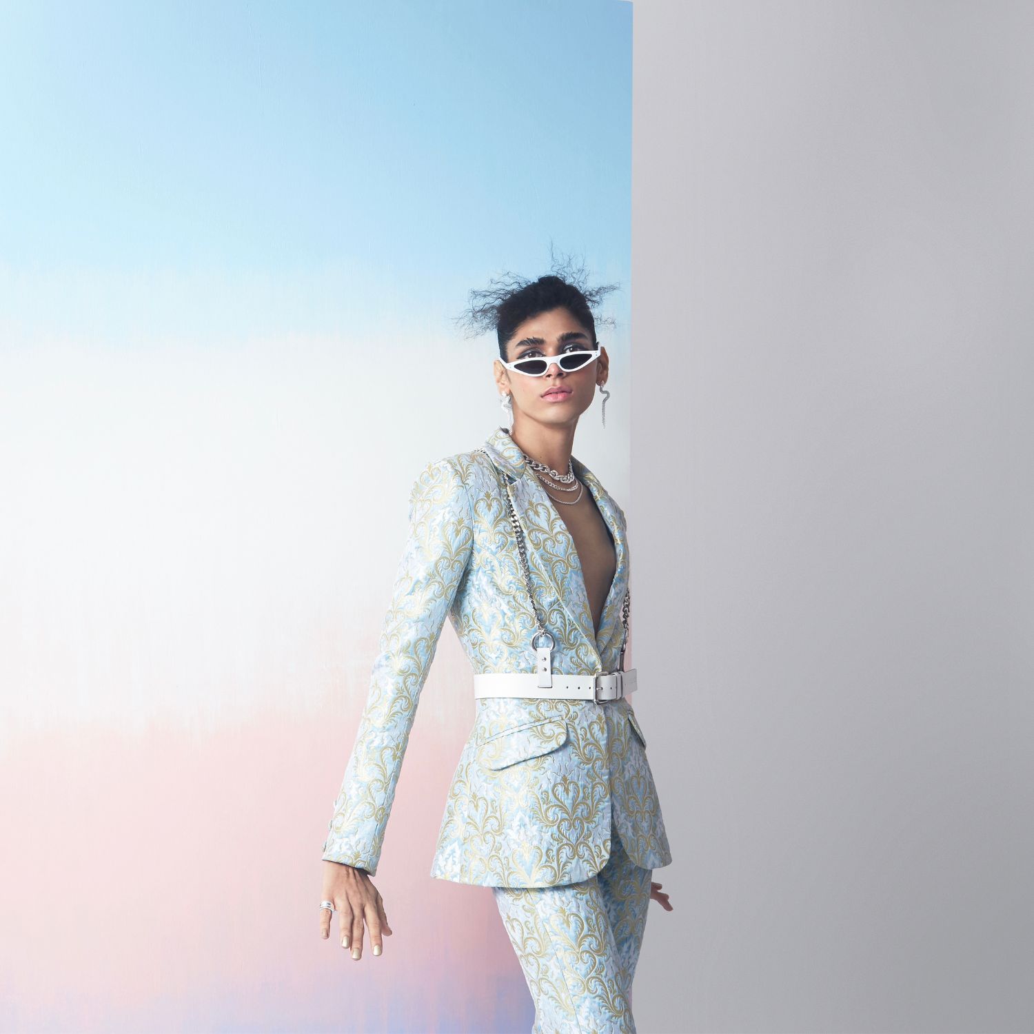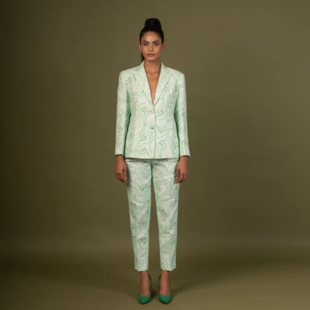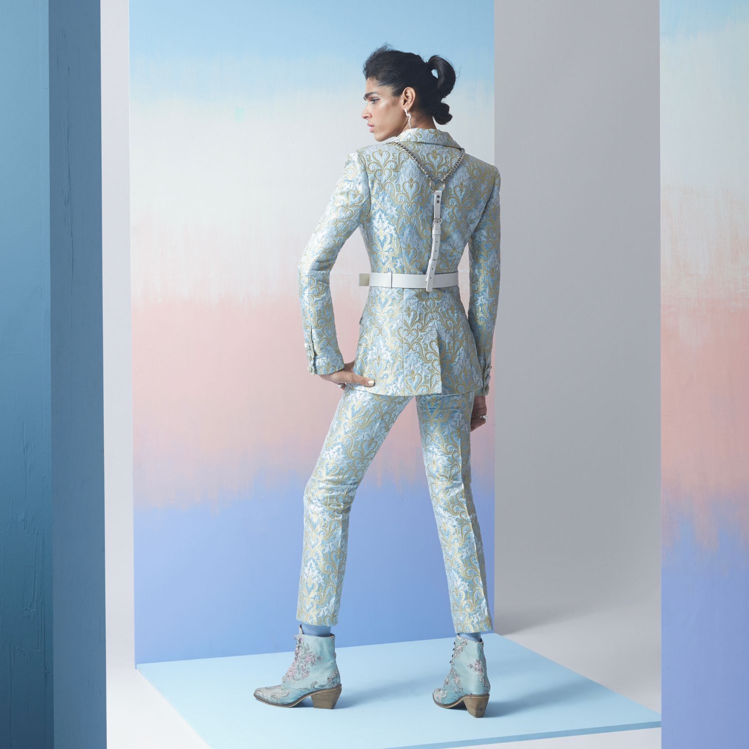 Material: Handloom Brocade: 45% Art Silk, 30% Viscose, 25% Zari. Turkish Satin Lining: 100% Polyester. Exposed button closure at center front.