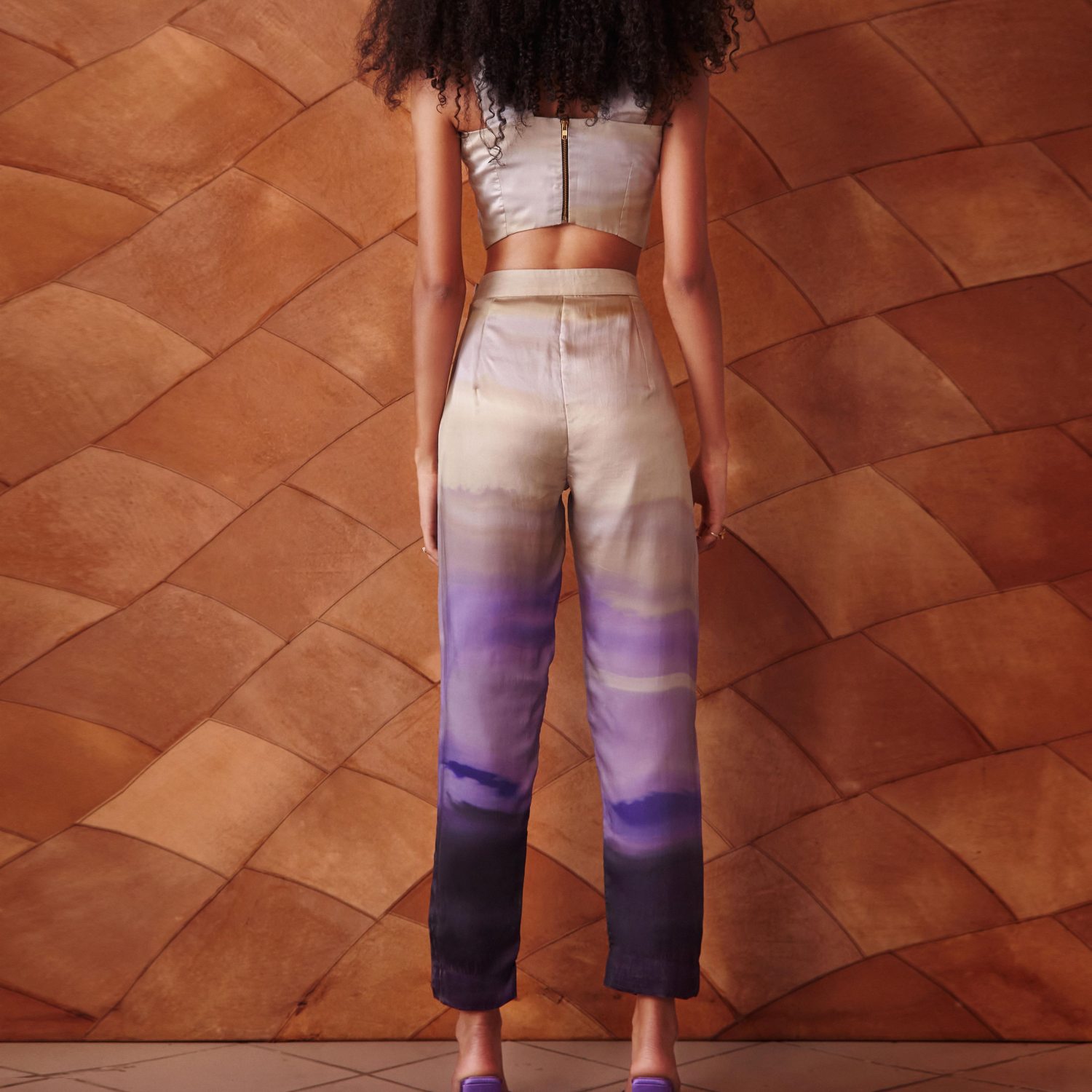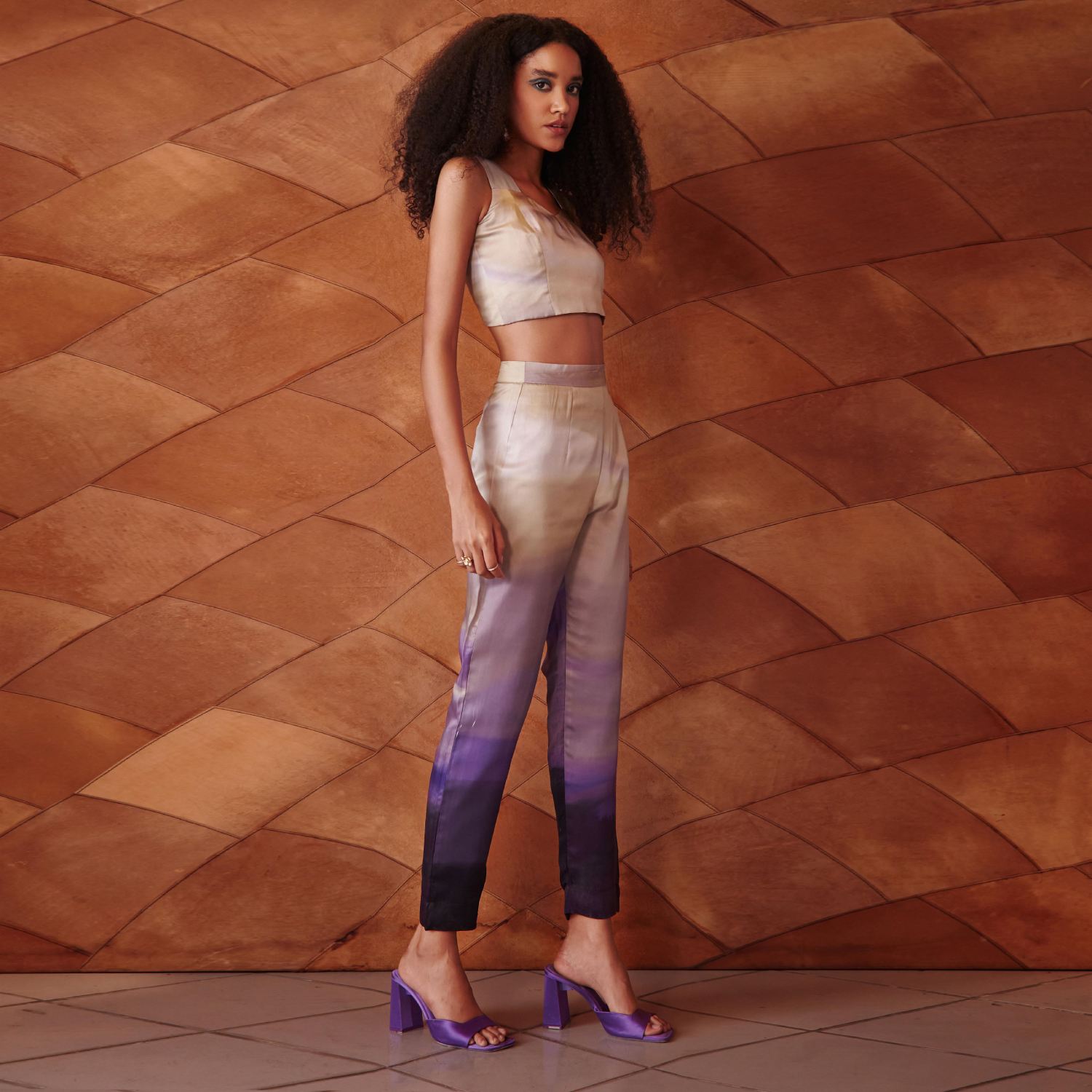 Crafted from high-quality rayon fabric, this set includes a crop top and high-waisted trousers. The sleeveless top features a sweetheart neckline, broad shoulder straps and back metal zip. The matching trousers have side pockets, waistband and a concealed side zip.